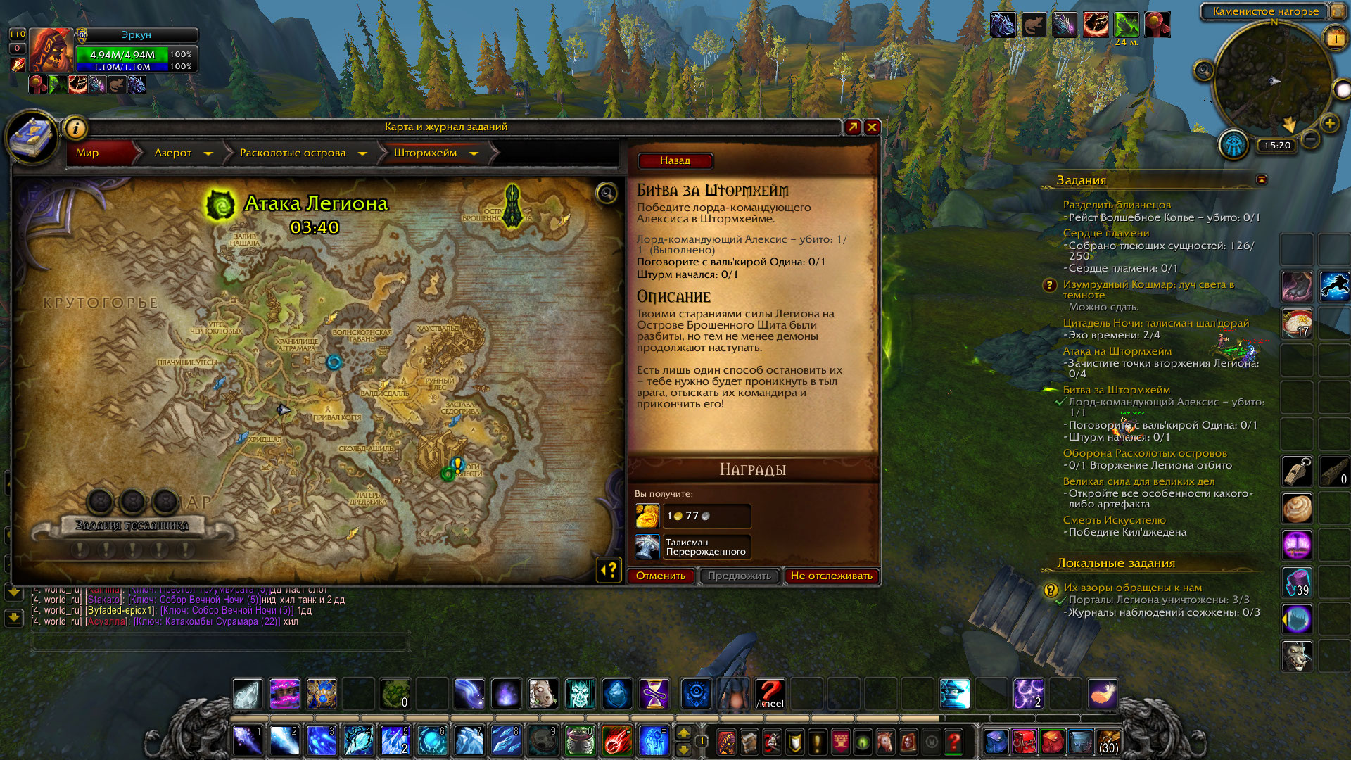 | Description | 1. Эркун 2. Оборона Расколотых островов 2.1. Битва за Штормхейм 2.2. Атака на Штормхейм 3. Зачистив все точки вторжения легион на Штормхейме не засчитался квест (Атака на Штормхейм), прилетев к Ветиру взял квест (Неистовство-шторма) сделал его и сдал, прилетела Валькирия и выдала квест(Битва-за-Штормхейм), выполнил сценарий. Телепортировало к Одину, но сдать квест не могу. Соответственно оборона Штормхейма не засчитывается. В связи с этим Оборону расколотых островов так же не могу сделать. | ||||