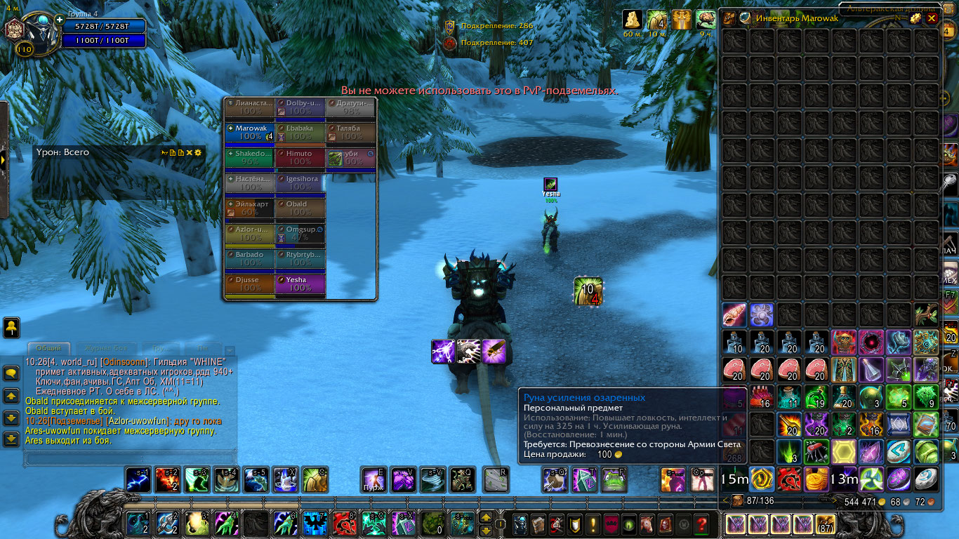 Добрый день! Тему подтверждаю. Предметы такие как Руна усиления озаренных - не должны прожиматься на бг, а так же их баф должен сниматься при входе. На всякий случай: https://youtu.be/Hl6JH_pOKLM?t=14678 |