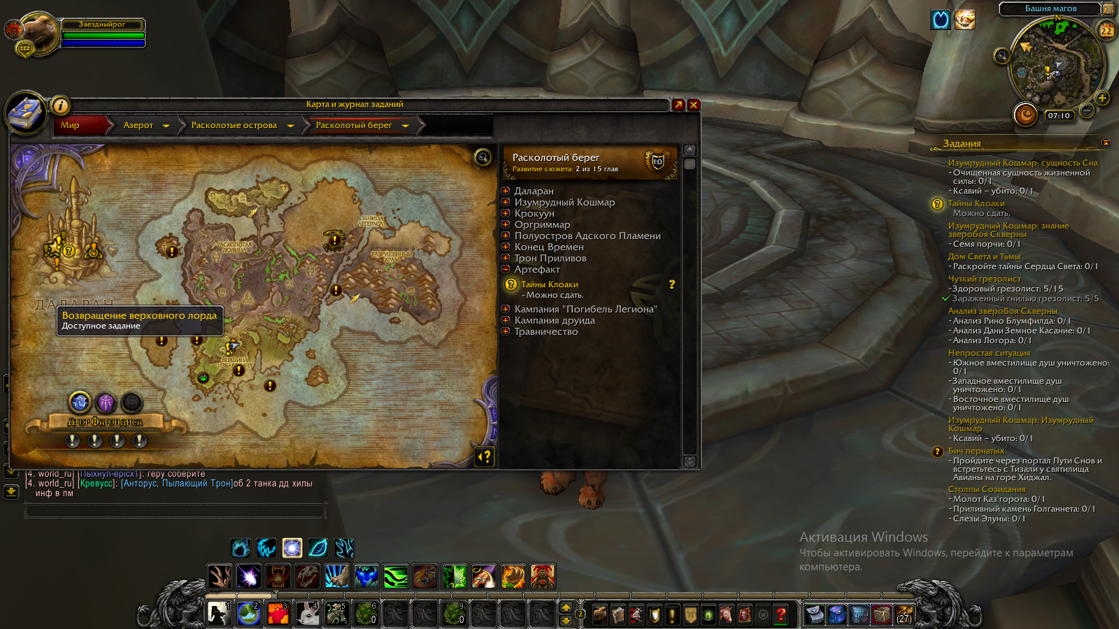 Квест берется когда активна башня магов у нпс https://ru.wowhead.com/npc=117871 http://egammi.net/image/SaaW Вот где можно сдать квест http://egammi.net/image/SaaD |
