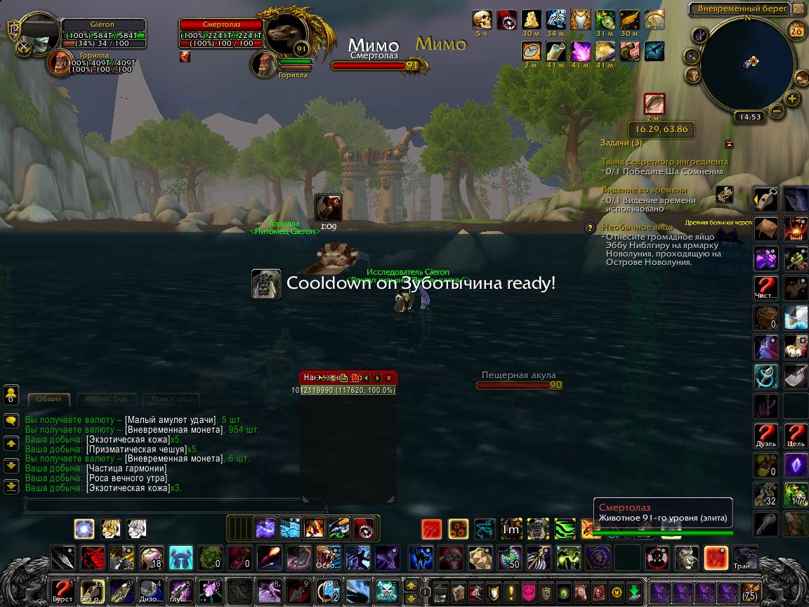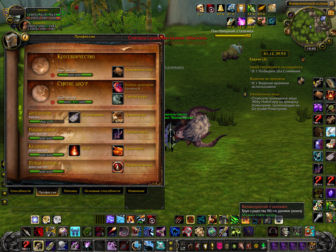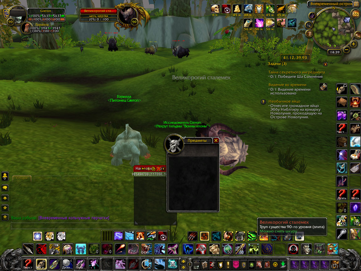 Hurtful,на Вневременно острове такая проблема как вы описали выше на 90% мобах присутствует,моба убил,а снять шкуру невозможно,потому что якобы там осталась добыча |