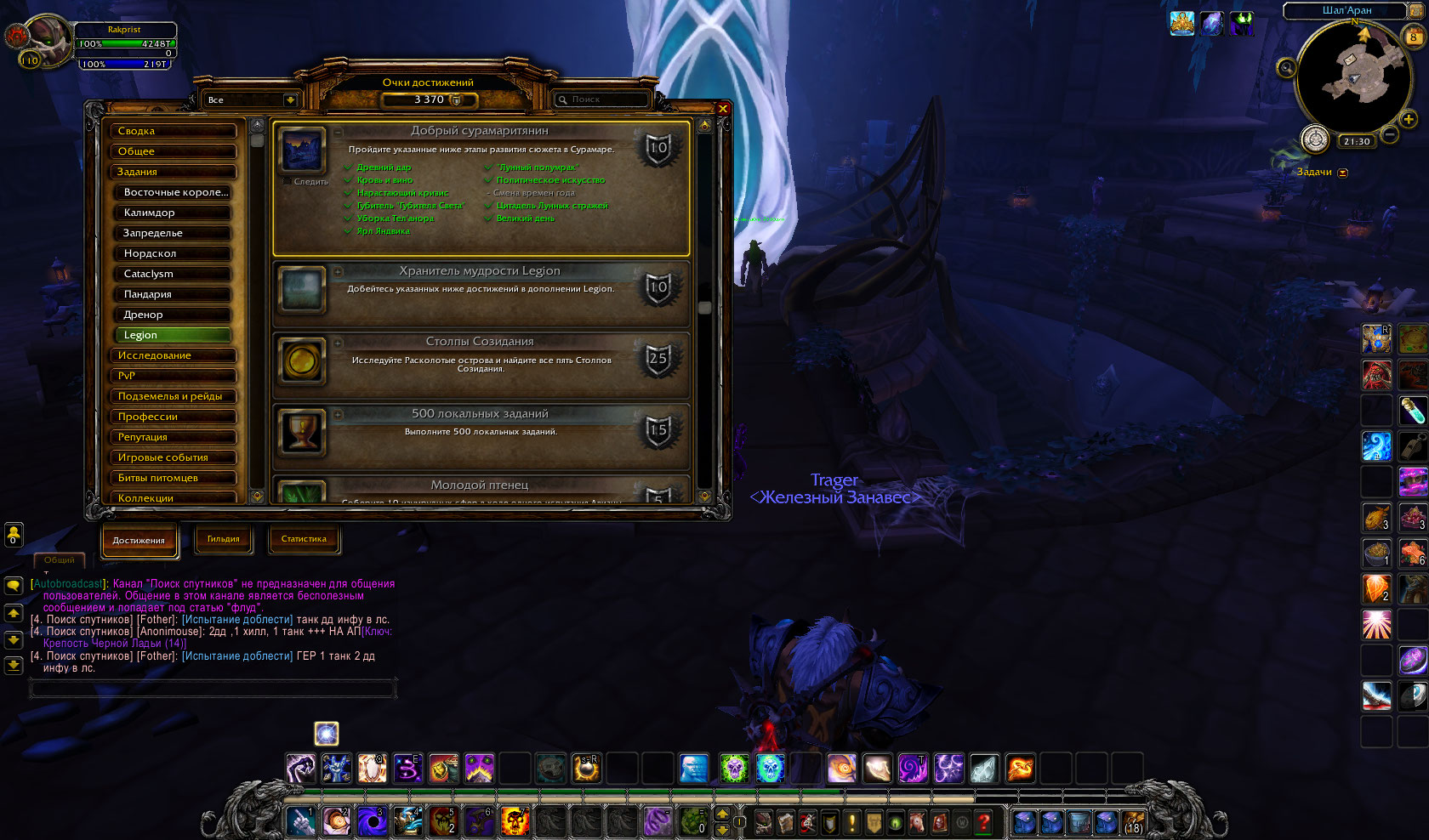 | Description | Получил достижение добрый сумаритянин для хм легиона и тут дискон, достижение пропало вместе с квестами | ||||
