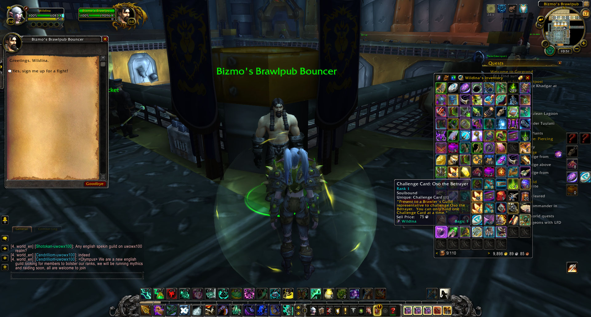 | Description | The Brawler's guild challenger cards are not working, they are supposed to give you a second option at the bouncer to challenge the NPC on the card. ( https://ru.wowhead.com/item=143899/карточка-вызова-предатель-осо#sold-by ) | ||||