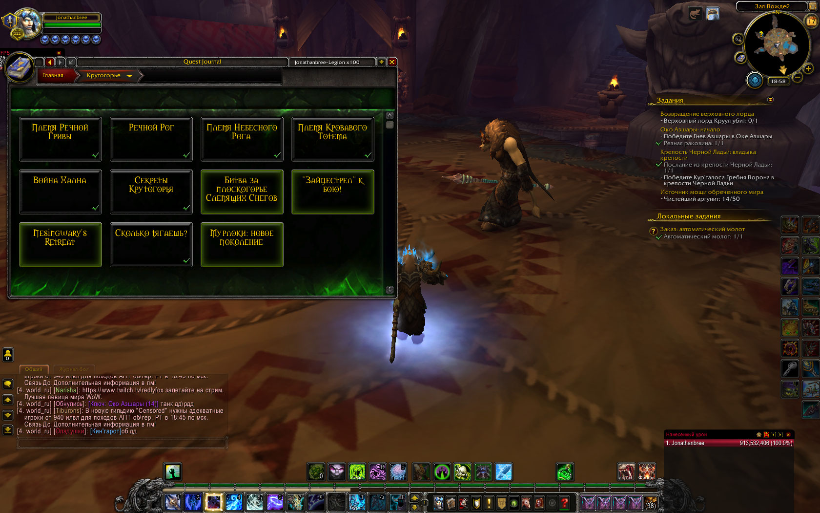 Тестеры принимают в работу запротоколированные баги сервера, которые можно исправить посредством обращения к разработчикам проекта. С одиночными сбоями тестеры помочь не могут, так как у них не прав как либо вмешиваться в игровой процесс. Вместо этого тестеры могут предложить универсальные методы устранения сбоев или предложат обратиться к ГМам на форуме соответствующего сервера (Forum.epicwow.com, forum.uwow.biz и другие), так как перевыдать пропущенный квест могут только они. Но для этого потребуется написать обращение в правильной теме на форуме, оформив ее по принятому на форуме шаблону, и предоставить ГМам исчерпывающую инфу по проблеме. Косвенным доказательством того, что сюжетная цепочка Крутогорья полностью работоспособна является то, что 14 мая я в очередной раз прошел ее на таурене Крутогорья за одну сессию, затратив на все не более 2 часов 53 минут. Скриншот прилагается. То есть в случае острой необходимости можно выполнить отдельную сюжетную цепочку любой из локаций мира ВОВ и она пойдет зачетом в Хранителя мудрости для аккаунта. Но можно попробовать самостоятельно найти пропущенные квесты. Для этого нужно включить (или проверить что включено) отображение на радаре простых заданий - все сюжетки , кроме Сурамара расчитаны на 98 уровень и на 110м не будут отображаться на радаре, если не включить опцию. Например указанные Вами квесты Ночные ведьмы и Отголоски Смертокрыла не являются частью сюжетной цепочки Крутогорья а всего лишь так называемые "дополнительные задачи", которые при уровне персонажа ниже 110 позволяют заработать немного голда, а на 110м уровне трансформируются в локальные задания (не всегда кстати и не во всех локациях). Подвожу итог - аддон от Серого Мыша удобен в качестве обзорного, но все же содержит непринципиальные ошибки. Он был создан в период, когда цепочки квестов еще не были приведены к каноническому (как на оффе) виду. Для надежной проверки квестов лучше использовать другой аддон из тех, что я предлагал - он помимо статуса квестов показывает взаимосвязи между квестами. На скриншотах видна последовательность квестов в двух цепочках, как она должна быть для ХМ. Я рекомендую провериться еще аддоном BtwQuests, 39456 - это квест Неожиданные союзники, открывающий доступ к последней цепочке сюжетки, наравне с еще двумя. Скриншо прилагается. Возможно , еще какие то квесты пропущены. А дальше ищите на вовхеде у кого , у какого НПС с каким ИД надо взять квест и пытайтесь квест получить и выполнить. Если фаза местности поменялась (сюжет то развивается) и НПС уже другой - помочь Вам смогут только ГМы игровго раздела форума, которые назначат способ лечения и перевыдадут квест. Но для этого потребуется пообщаться с ними на форуме Вашего сервера. Возможно эту операцию (обращение на форум) придется повторить несколько раз, пока все пропущенные квесты не будут выполнены. Отсюда вторая рекомендация - если есть твинк 98+ - не теряйте времени и делайте сюжетку Крутогорья заново, постоянно сверяясь с результатами аддона BtwQuests. |