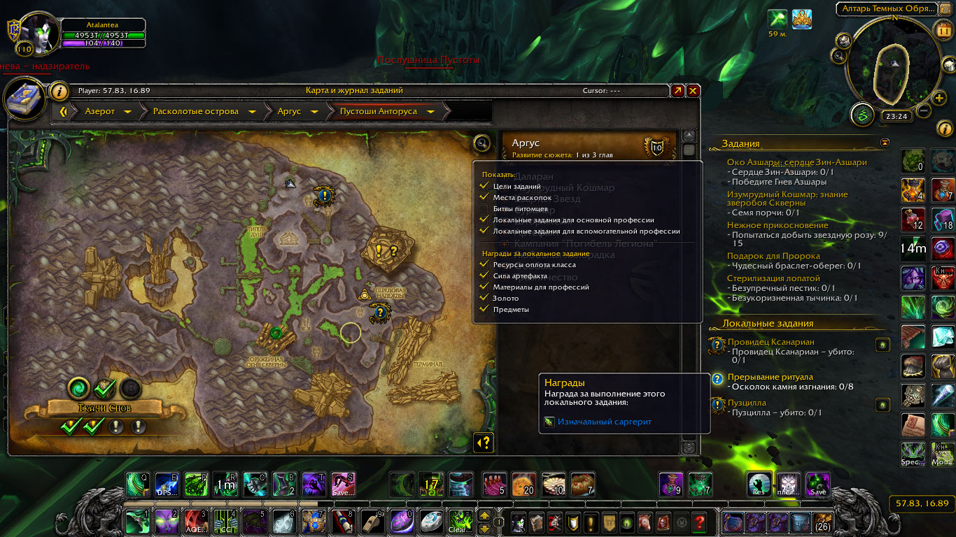 | Description | https://ru.wowhead.com/quest=48958/прерывание-ритуала Не отображается на карте С мобов (https://ru.wowhead.com/npc=127103/послушник-пустоты и https://ru.wowhead.com/npc=127109/страж-гнева-надзиратель) нет лута, вообще никакого, https://ru.wowhead.com/item=152465/осколок-камня-изгнания получить нельзя - квест не выполнить | ||||