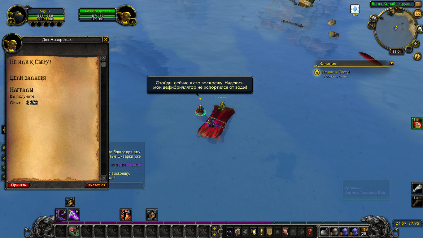 1. Проблема с принятием https://ru.wowhead.com/quest=14239/не-иди-к-свету, как я и писал, возникает, если немного подождать, т.к. NPC убегает, вы ждали или сразу взяли квест? 2. У меня просто не нажимается кнопка завершения квеста https://ru.wowhead.com/quest=14239/не-иди-к-свету 3. Я же писал, что https://ru.wowhead.com/quest=14234/враг-моего-врага у меня взят после завершения https://ru.wowhead.com/quest=14234/враг-моего-врага, вот только некому его сдавать, т.к. на острове нет нужных NPC, видимо из-за того, что не были выполнены предыдущие квесты Я уже и персонажа пересоздавал и проходил цепочку заново, теперь буду 3 персонажа создавать |