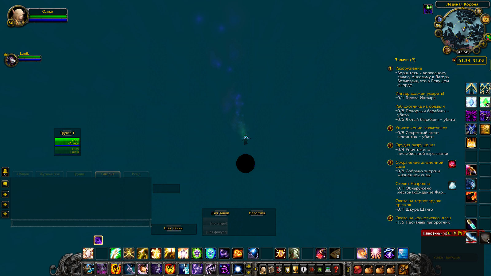 | Description | Когда в Даларане подходишь к https://ru.wowhead.com/npc=31085/ и выбираешь "мне нужно попасть на корабль" тебя садит на вертолетик и все идет хорошо до определенного момента. в Какой-то момент у тебя появляется окно прогрузки и вот ты уже в невесомости падаешь сквозь текстуры в реальную черную дыру (см. скрин). Дыра тебя приводит на кладбище уже в другой точке Ледяной короны. где ты с 1 хп, с маной которая регенится но мертв. После релога уже можешь реснуться и нозями лететь на корабль. | ||||