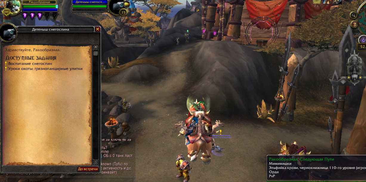 | Description | Питомецы по типу https://ru.wowhead.com/npc=115787/детеныш-кровогляда , у них откатывает квест на получение 25 уровня https://ru.wowhead.com/quest=44990/воспитание-кровогляда , когда он уже 25 , он его снова дает и выходит что тупик в цепочке | ||||