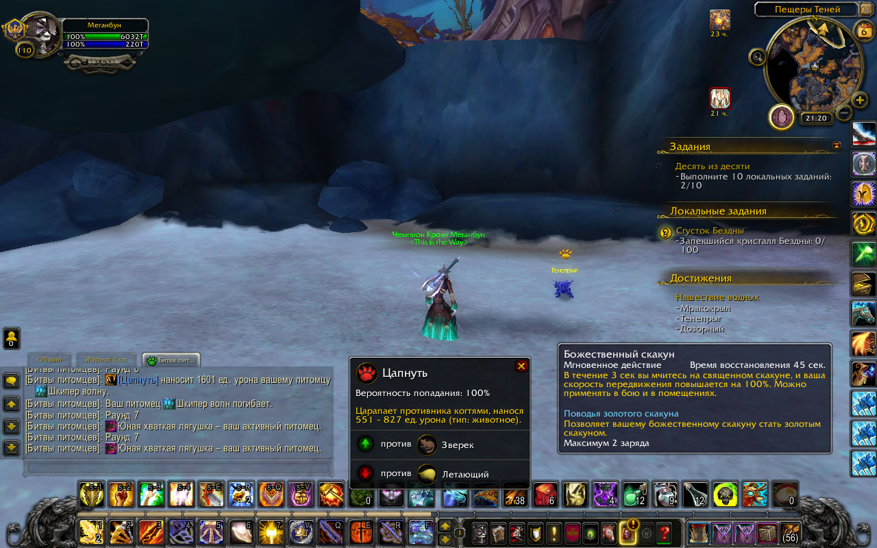 Попробовал этих питомцев, Тенепрыг всё так же ходил только один раз за раунд https://ru.wowhead.com/npc=45247 https://ru.wowhead.com/npc=40624 https://ru.wowhead.com/npc=93808 |