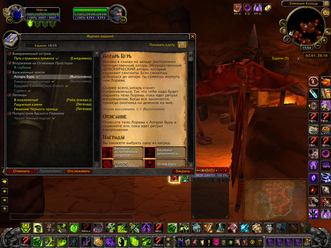 Квест не выполним https://youtu.be/7_jyhx_tzss При выходе первого демона https://www.wowhead.com/ru/npc=41193/%D1%82%D0%B5%D0%BB%D0%BE-%D0%BB%D0%BE%D1%80%D0%B0%D0%BC%D0%B0 умирает и пропадает. |