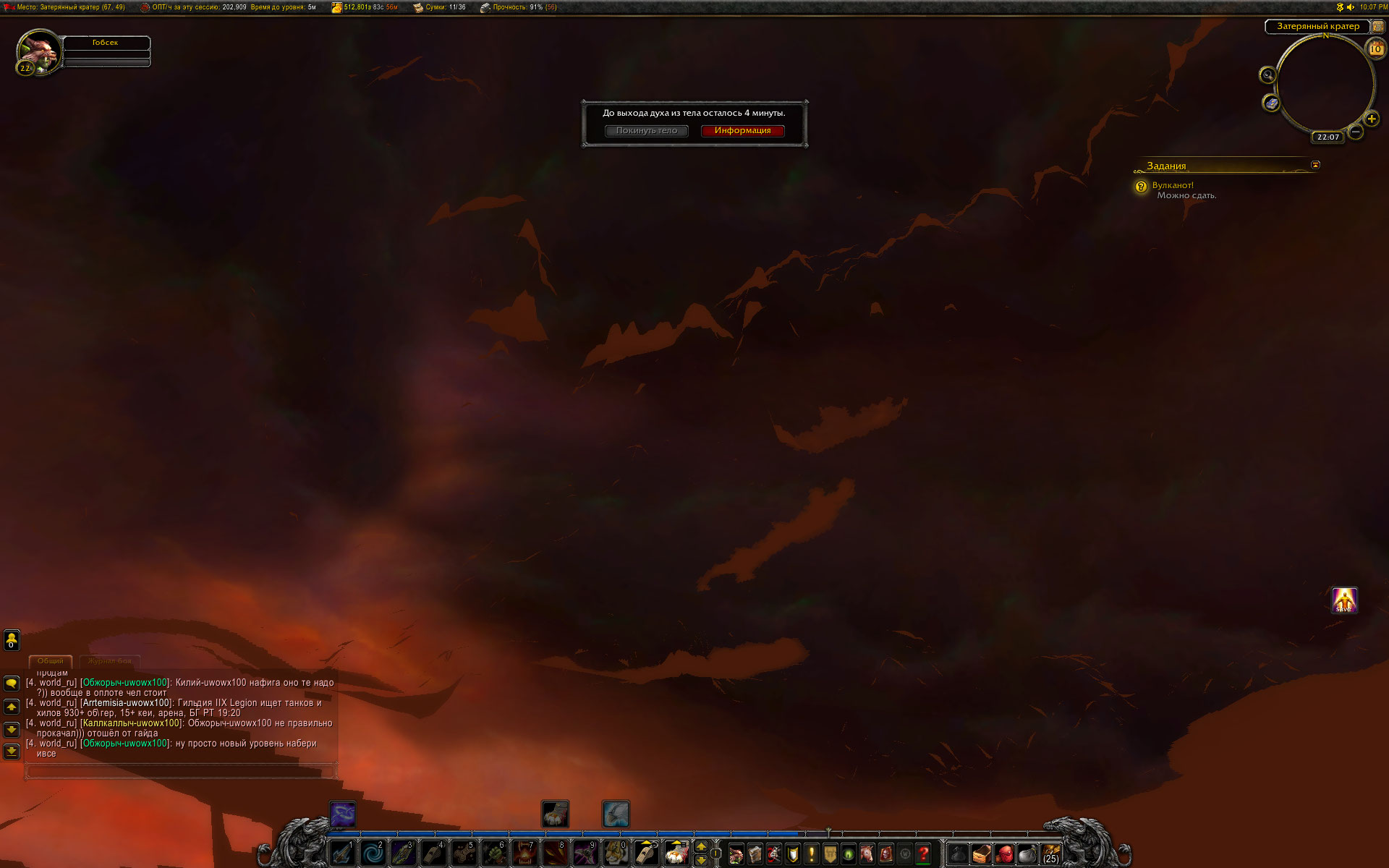 Дополню картину полной опы, которую создали разработчики. Камень возвращения можно привязать в таверне Городок в Табакерке, но это не решает проблемы по причине, описаннной в конце рапорта. Если в дополнение в вышеописанному умереть на Вунканоте, получаем следующее: попытка возрождения на месте - персонажа кидает к ангелу, который находится непонятно где (непонятно, так как персонаж проваливается в текстуры и не успевает пообщаться с ангелом, предположительно на берег южнее вулкана), повторные нажатия на кнопку "Вернуться на кладбище" снова бросают под текстуры. Если провалиться окончательно и после шестиминутного интервала все же возродиться, то персонаж появляется на берегу, а не в пещере вулкана и по причине смены фазы местности не может снова попасть в точку сдачи квеста. Таким образом последовательность квестов становится абсолютно невыполнимой, независимо от возможности сдать квест где нужно. С фазированием что то надо делать, или как минимум исправлять текстуры и ангела. Скрины прилагаются. |