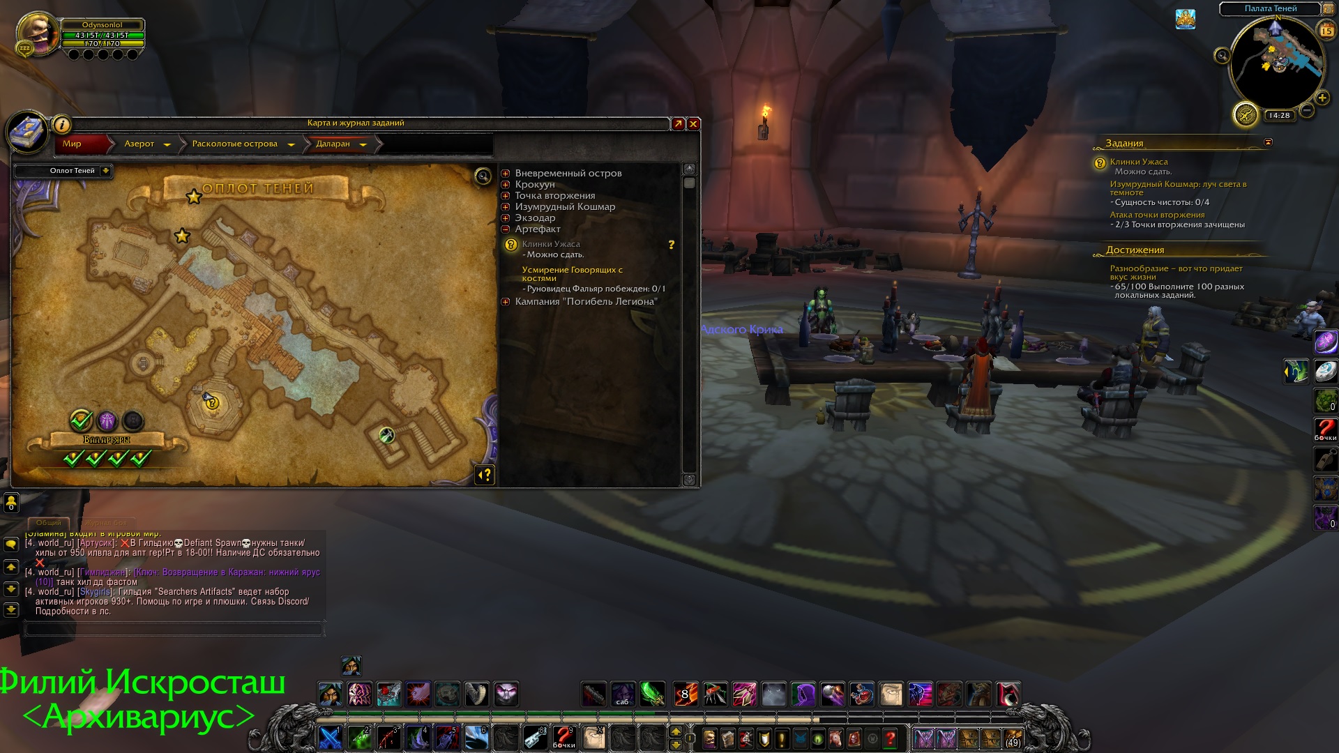 Я же отвечал на все эти вопросы уже, делаю второй артефакт, последний квест который я делал, был https://ru.wowhead.com/quest=40847/дружеское-соглашение, а в данный момент не могу сдать квест "клинки ужаса" |