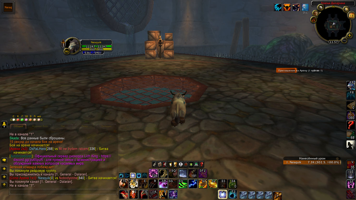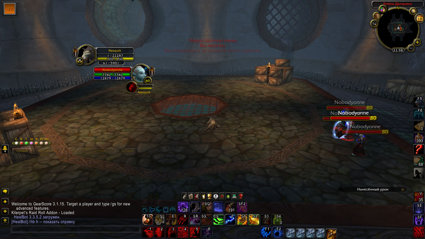 | Description | Приблизительно одна из 10-15-ти игр на арене 1х1 багается, нету ворот, не возможно убить противника (В рандомном порядке один игрок может использовать способности). Покинуть арену не возможно, не помогает (/reload) "Выйти из мира" тоже не возможно, помогает только полное закрытие игры. Начисление или уменьшение рейтинга происходит рандомно. | ||||