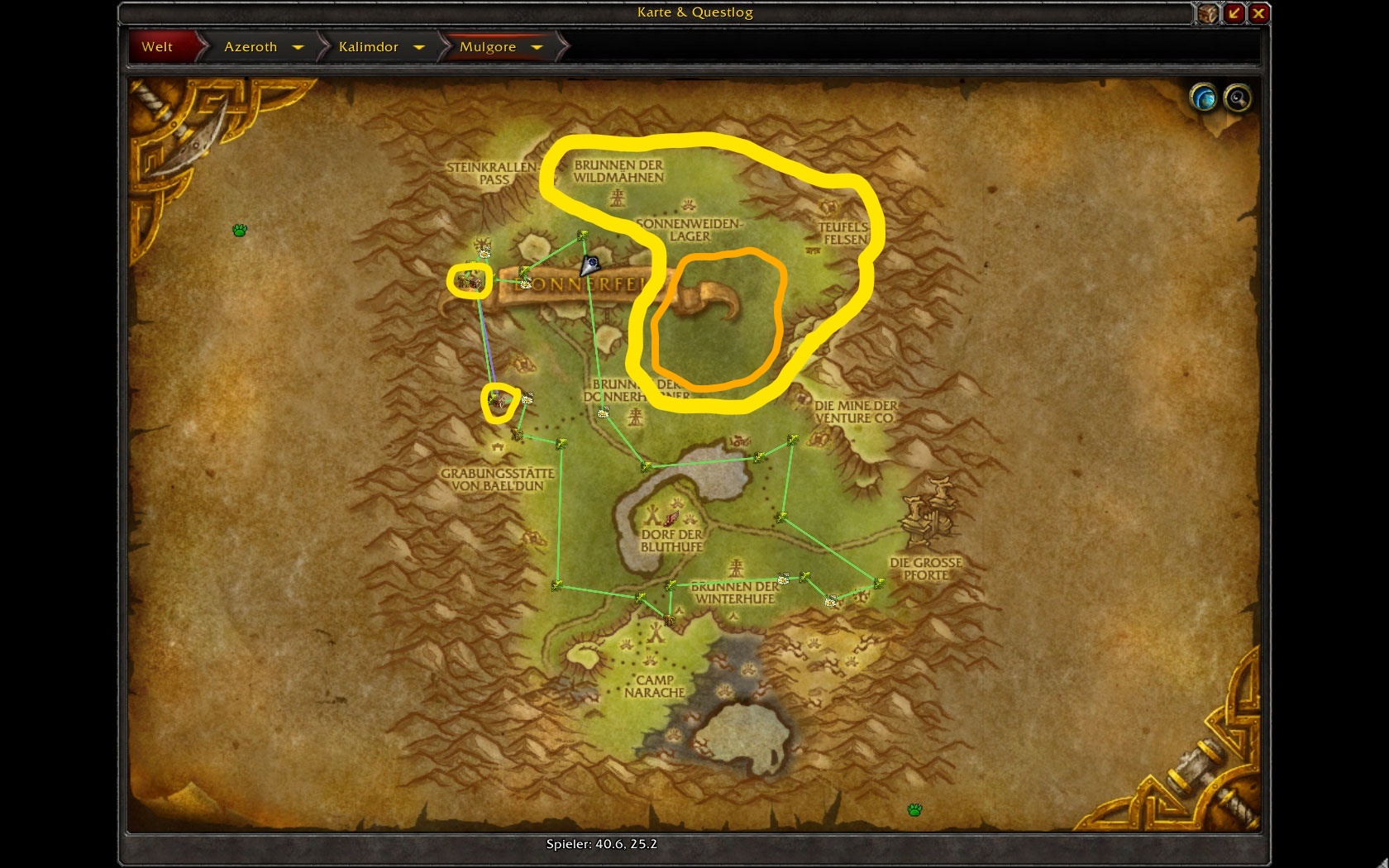 | Additional Information | Es wäre super, wenn in Mulgore auf "Den Goldenen Ebenen" einige Mobs und Pflanzen erscheinen und es nicht so leer ist. Vielleicht die vorhanden Mobs in Mulgore etwas besser verteilen - an manchen anderen Stellen häufen sich diese etwas. In den ramponierten Truhen sollten einige interessante Gegenstände versteckt sein. | ||||