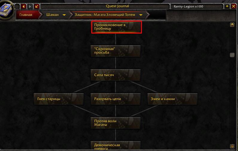 Я скачал аддон и он ничего нового мне не показал. Получается у меня выполнена первая глава, а для выполнения второй главы необходимо достижение "Проникновение в Гробницу" для получения которого нужно задание "Защитники Армии погибели Легиона", которое у меня не появляется. По аддону я ничего не пропустил. |