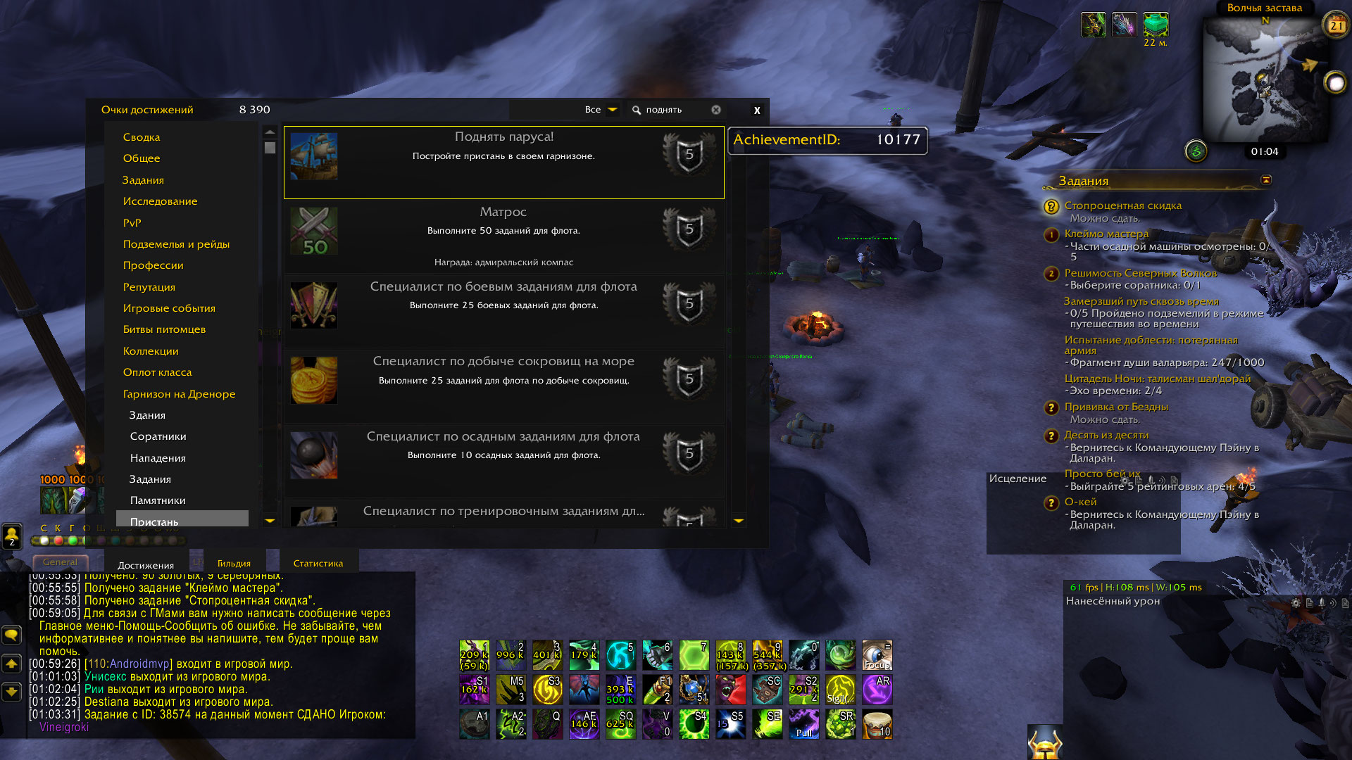 Здравствуйте! Пристань пока не реализована, это указано в этой теме: http://tracker.legionbugs.com/view.php?id=8337 Дополнил про цепочку квестов |
