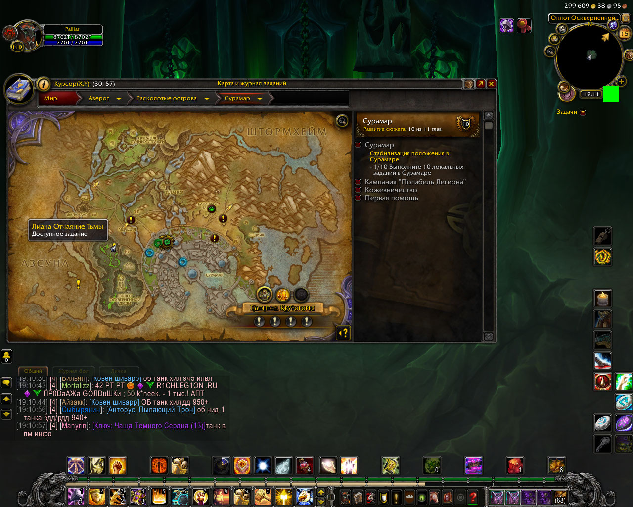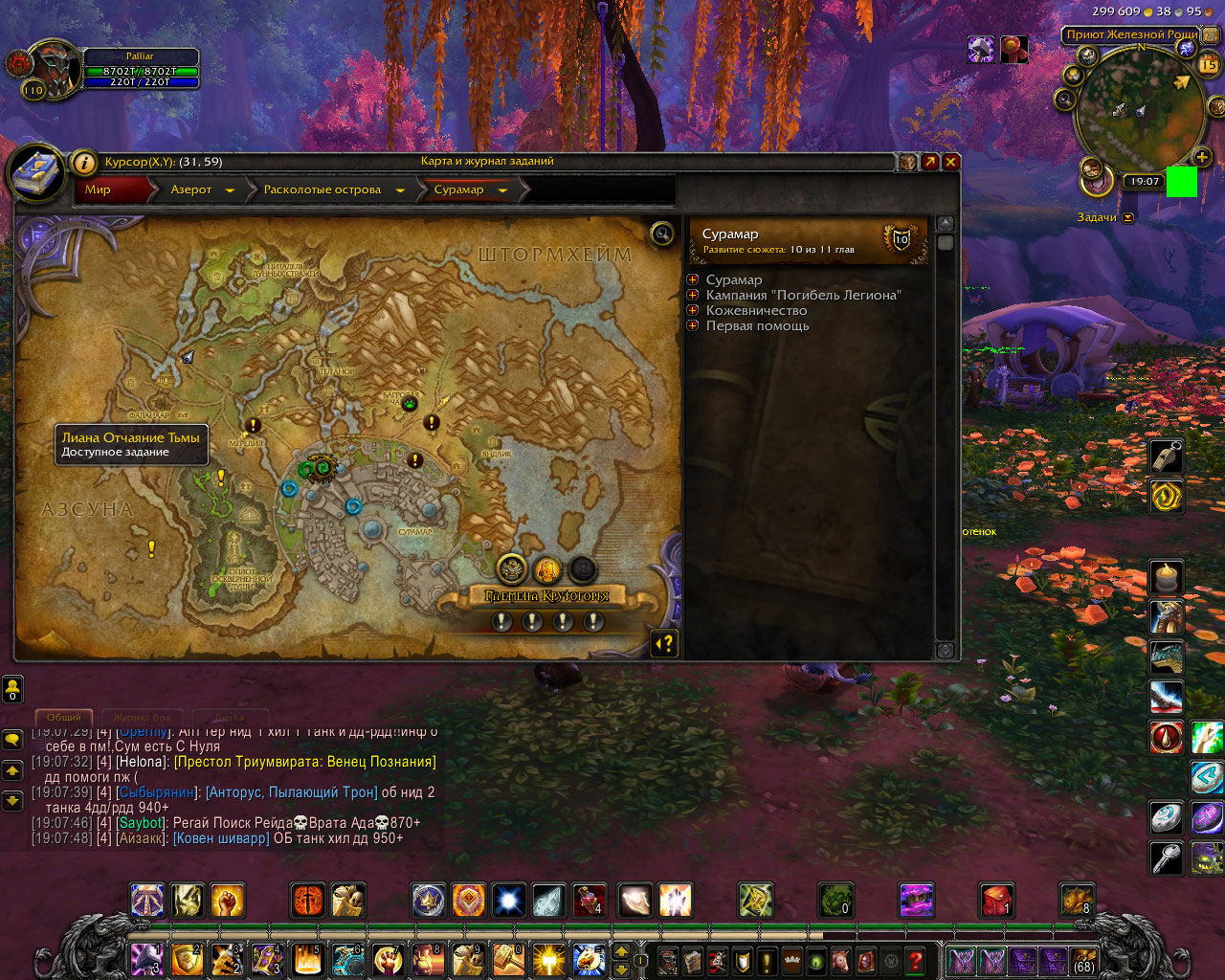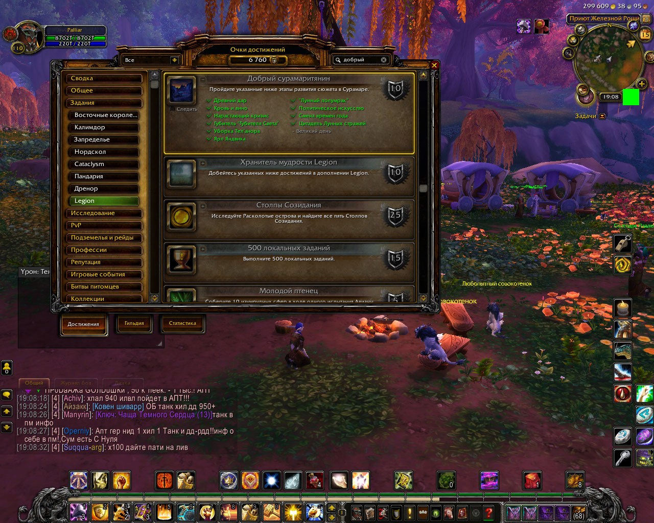 Здравствуйте. http://tracker.legionbugs.com/view.php?id=12992#c38579 отсюда устанавливаете аддон BtwQuests и проверяете критерии запуска цепочки Великий день. Заодно посмотрите состояние остальных цепочек. Скриншоты из аддона помогут тестеру быстрее помочь Вам. |