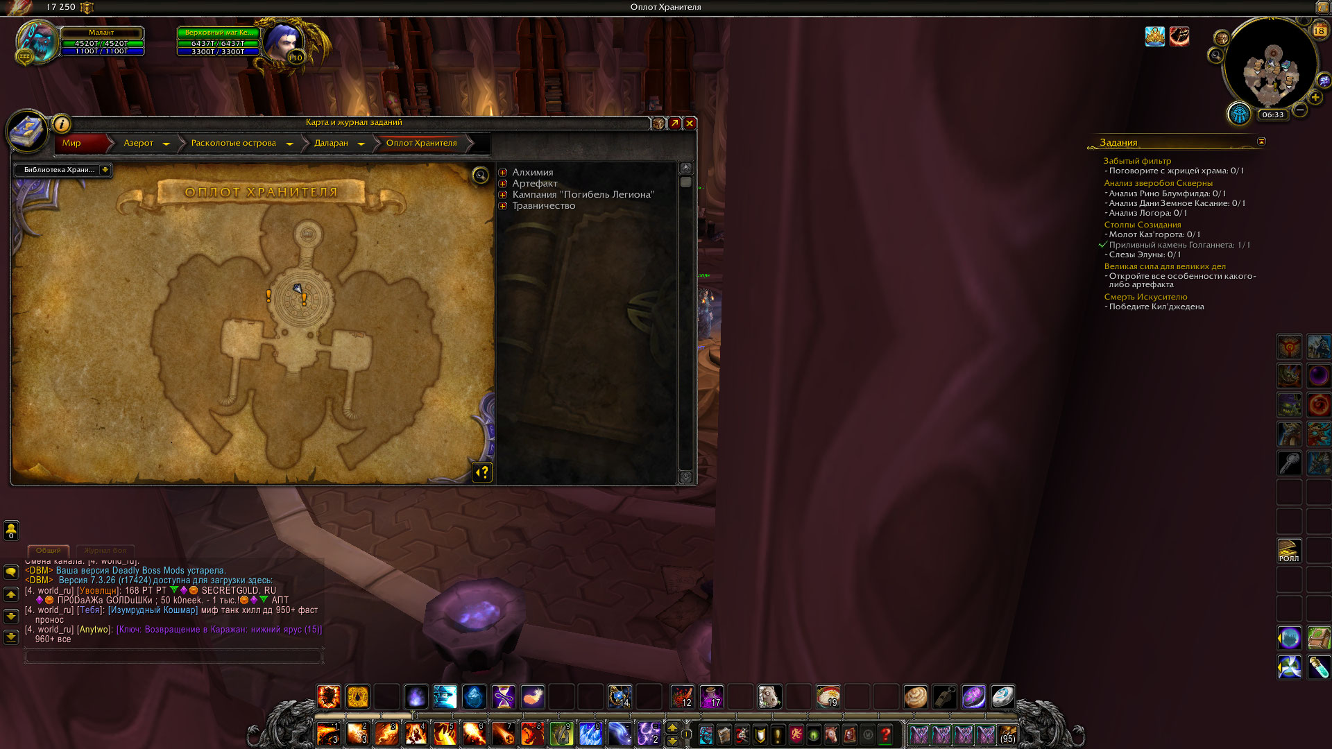 Напишите сюда http://forum.uwow.biz/topic/254394-problema-s-artefaktom-i-oplotom-kvesty-dop-taly/ |