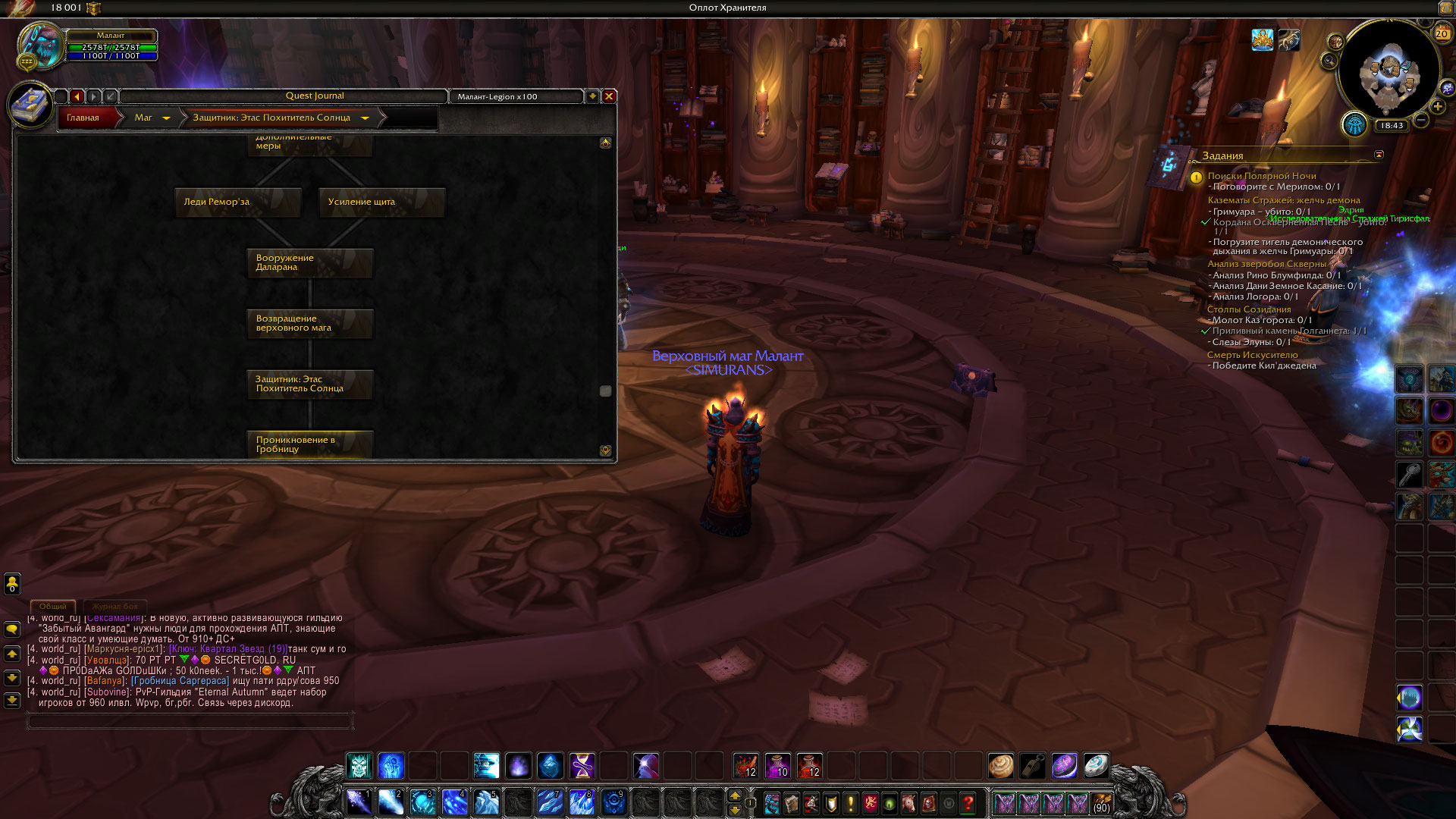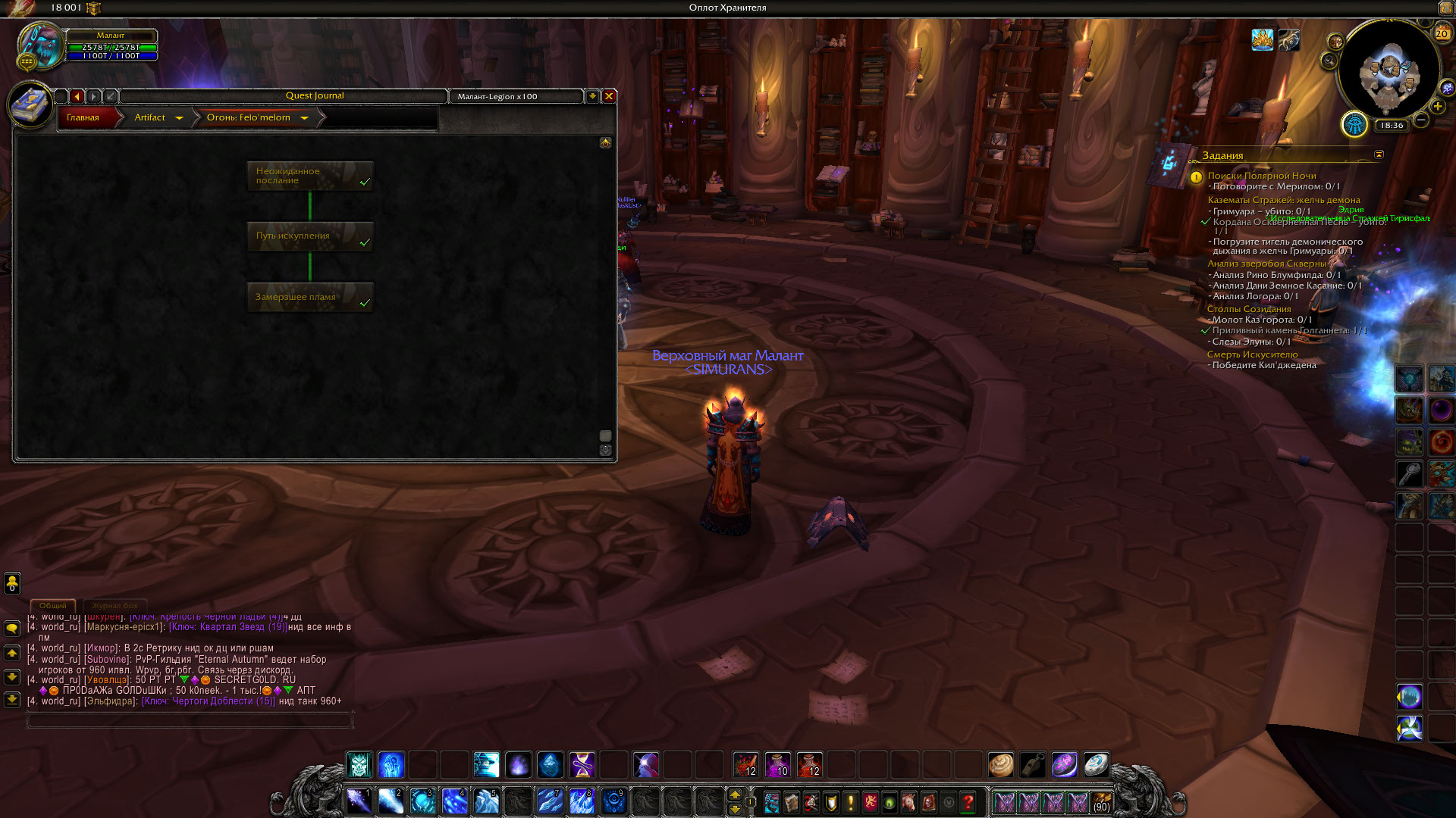 | Steps To Reproduce | Продолжить цепочку получения артефакта,а именно взять квест- https://ru.wowhead.com/quest=42452/%D0%BF%D0%BE%D0%B8%D1%81%D0%BA%D0%B8-%D0%BF%D0%BE%D0%BB%D1%8F%D1%80%D0%BD%D0%BE%D0%B9-%D0%BD%D0%BE%D1%87%D0%B8 У Мерил Буря Скверны в оплоте магов. | ||||