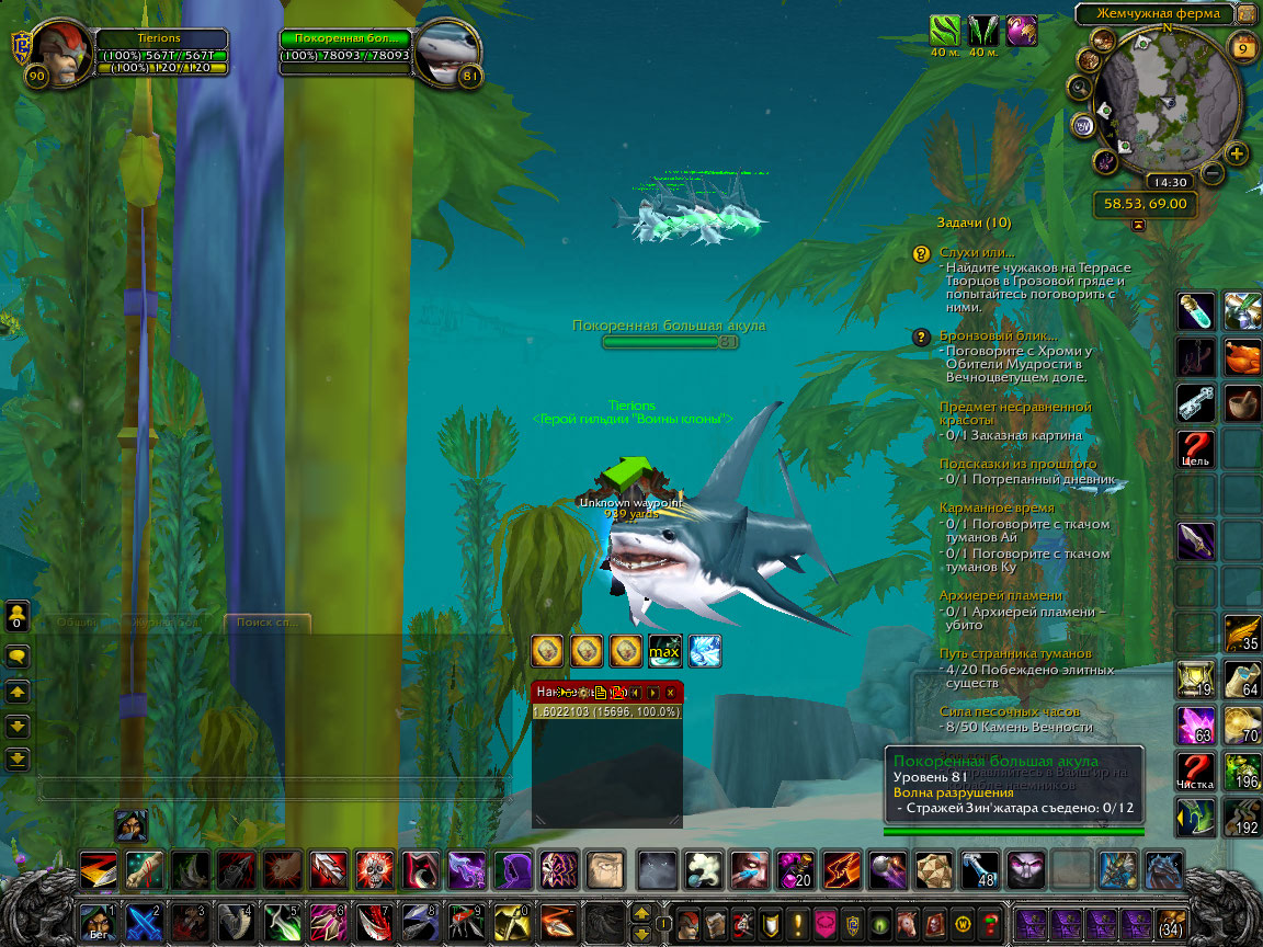 | Description | https://ru.wowhead.com/quest=25887/волна-разрушения https://ru.wowhead.com/item=56576/%D1%81%D1%84%D0%B5%D1%80%D0%B0-%D0%B2%D0%BD%D1%83%D1%88%D0%B5%D0%BD%D0%B8%D1%8F вместо того чтобы призвать и оседлать акулу, которую затем можно использовать для выполнения квеста просто призывает https://ru.wowhead.com/npc=42013/%D0%BF%D0%BE%D0%BA%D0%BE%D1%80%D0%B5%D0%BD%D0%BD%D0%B0%D1%8F-%D0%B1%D0%BE%D0%BB%D1%8C%D1%88%D0%B0%D1%8F-%D0%B0%D0%BA%D1%83%D0%BB%D0%B0 в количестве зависящих от того сколько раз нажать эту сферу и на неопределенный срок, акула атакует цель которую вы выбрали при использовании сферы, убитые такой акулой стражи в зачет квеста тоже не идут | ||||