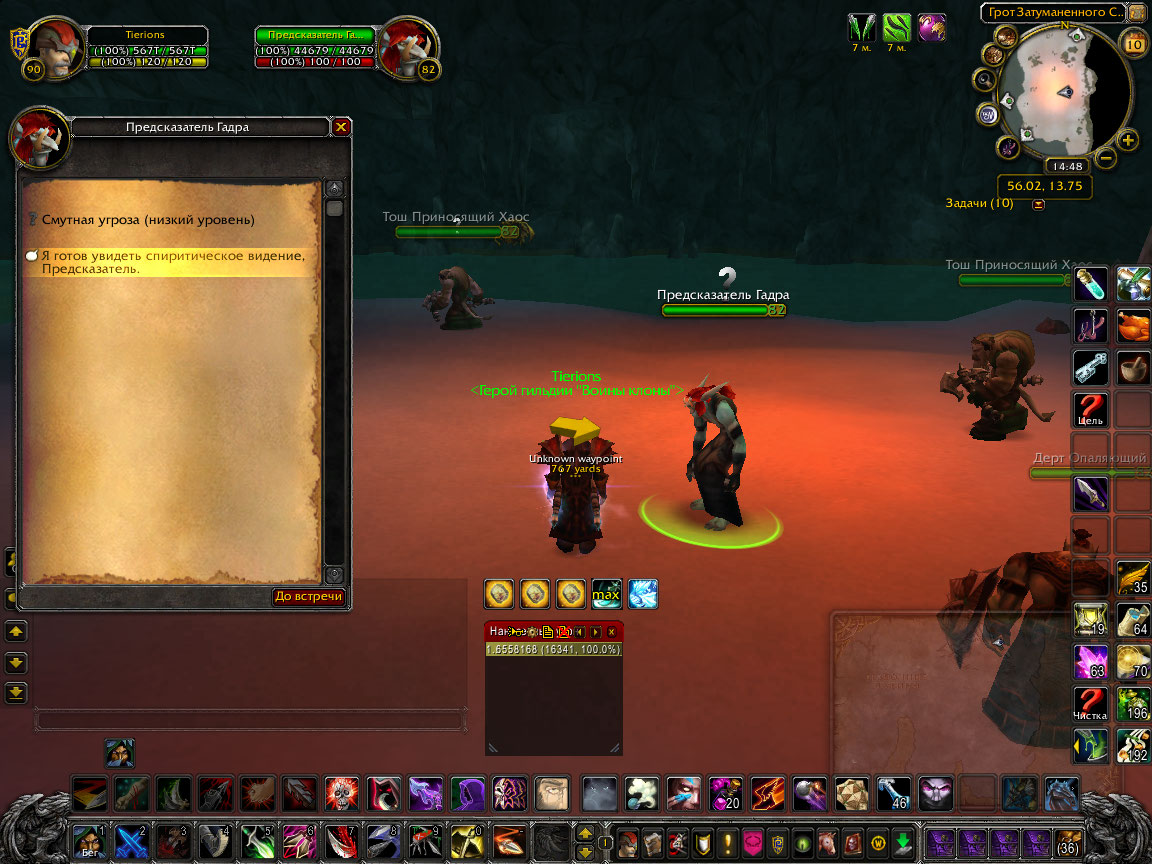 | Description | https://ru.wowhead.com/quest=25334/%D1%81%D0%BC%D1%83%D1%82%D0%BD%D0%B0%D1%8F-%D1%83%D0%B3%D1%80%D0%BE%D0%B7%D0%B0 Если взять все задания в гроте где находится нпс дающий квест то возможность говорить с ним исчезает, после отмены другого квеста( https://ru.wowhead.com/quest=25221/%D0%BF%D0%BE%D0%B3%D0%BE%D0%BD%D1%8F ) и взятия снова возможность говорить с квестодателем появилась, но не удается начать спиритический сеанс | ||||