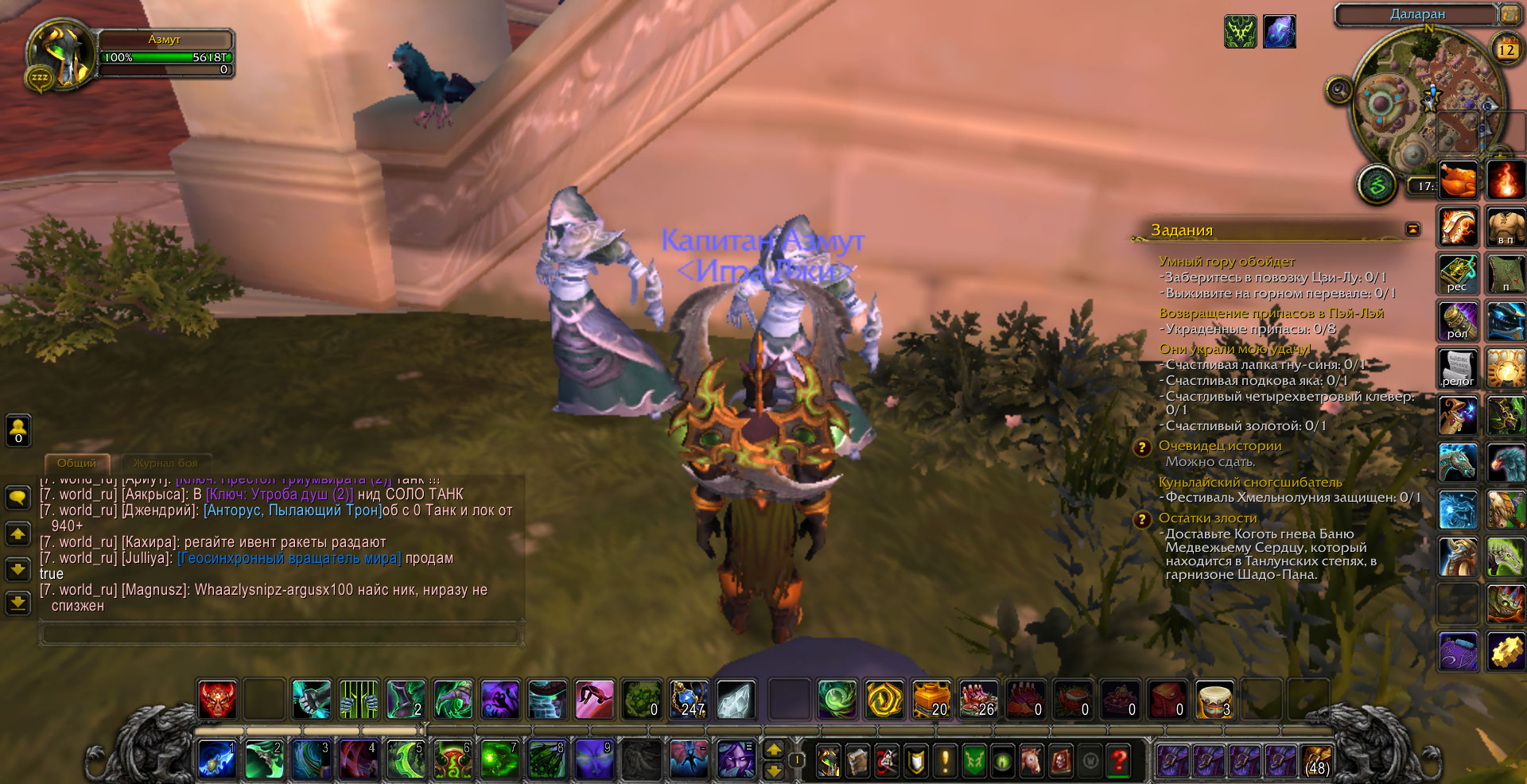 А вспомните, https://ru.wowhead.com/item=80241 выбивали из мобов? квесты https://ru.wowhead.com/quest=30582/%D0%BF%D0%BE%D0%BA%D0%BE%D0%B9%D0%BD%D0%B0%D1%8F-%D0%B3%D0%BE%D1%81%D0%BF%D0%BE%D0%B6%D0%B0-%D0%BC%D1%83%D1%81%D0%BA%D1%83%D1%81%D0%BD%D0%B0%D1%8F-%D0%BB%D0%B0%D0%BF%D0%B0 и https://ru.wowhead.com/quest=30804 на одном из персонажей я круга три сделал по мобам пока выпал предмет |