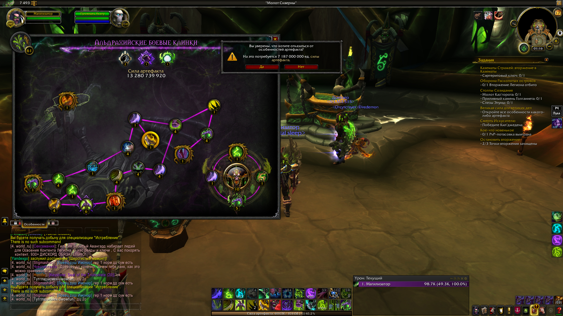 | Description | Немогу выполнить квест по цепочке артефактного оружия " Великая сила для великих дел" поспешил с прокачкой оружия , и столнулся с такой проблемой что при попытке перераспределить умения артефакта, нпс не сбрасывает мне , скрин есть силы артефактов хватает на сброс, хотел сбросить оружие спекиализации танк на ДХ - Альдрахийские боевые клинки , так как у них меньше уровень прокачки, есть возможность сбросить способности на этом артефактном оружие или как то засчитать квест? пробовал несколько дней сам исправить , не получилось. Сервер Legiom x100, Ник - Магилизатор. Прошу исправить это недоразуменее, или подсказать мне решение это проблемы) | ||||
