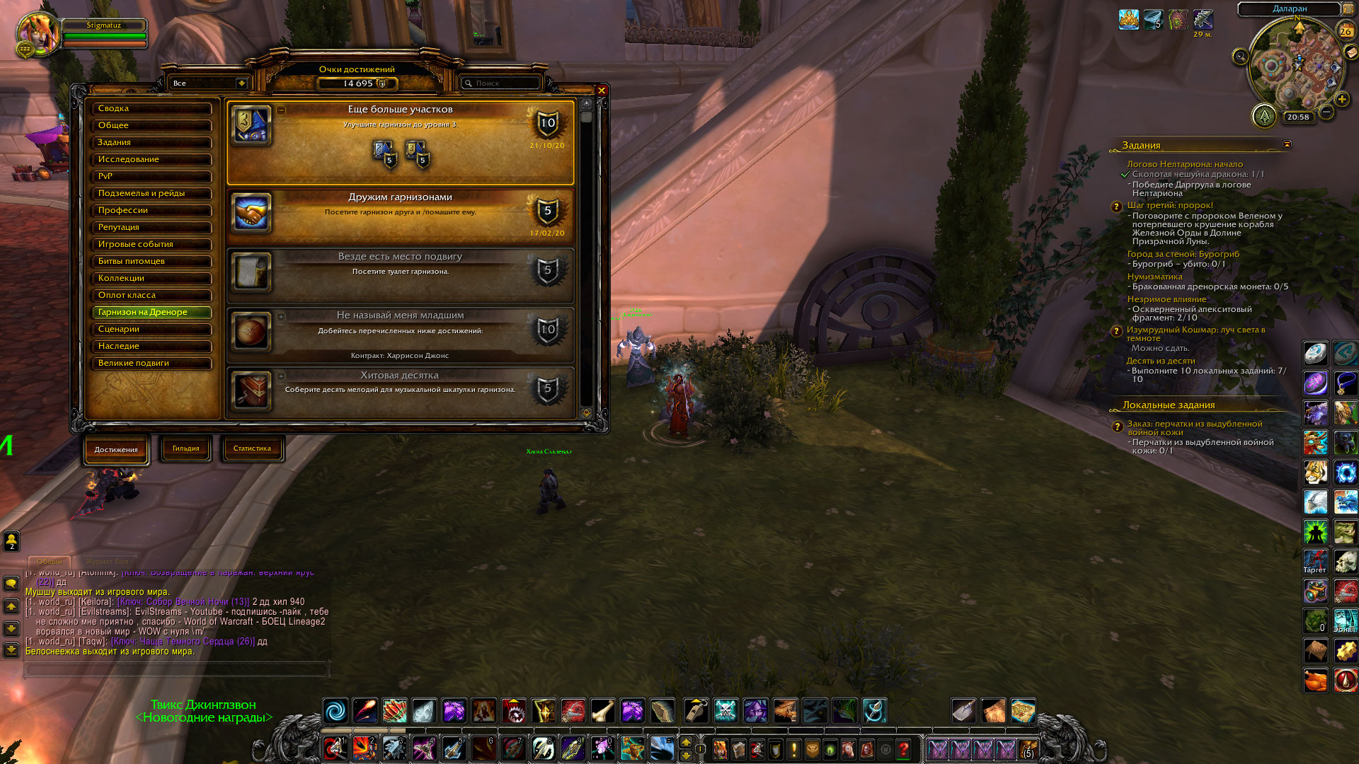 | Description | При попытке исправления задания у дебагера в даларане случайно нажал кнопку удаление гарнизона. Гарнизон был максимального уровня. Удаление произошло 23.03.2021 примерно в 20.50-21.00 по серверу. Новые попытки создать гарнизон не увенчались успехом. Можно ли как-то восстановить гарнизон???? Legion х100 ник персонажа Stigmatuz. Так же не получается получить достижение ,,Если я пойду долиною призрачной луны,, критерий очищение генофонда. Не даётся задание на начало цепочки, попросту в локации не осталось ни одного рабочего задания, все задания выполнил. И достижение ,, Скатертью телладорога,, выполнен критерий ,,бедствия арракоа,, нет заданий на начало цепочек для следующих критериев и тоже в локации не осталось ни одного задания., все выполнил. | ||||