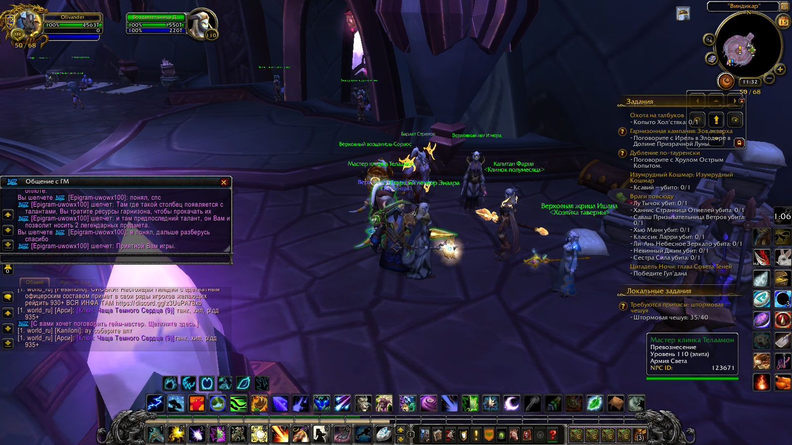 На квест https://ru.wowhead.com/quest=41918/%D0%B2%D0%BE%D0%B7%D0%B2%D1%80%D0%B0%D1%89%D0%B5%D0%BD%D0%B8%D0%B5-%D0%B8%D0%B7-%D1%81%D0%BD%D0%B0#english-comments можно забить по идее, это возвратный квест из цепочки артефакта в оплот. Если получено больше одного артефакта то этот квест может просто выпасть и исчезнуть. На моем друле он тоже не сделан, а кампания дру завершена полностью, классовый маунт получен. То есть точно не влияет. Для однозначности, таргет на себя, в белом чате ввести команду .q s 42051 скриншот сюда затем: Установить аддон IdTip отсюда https://www.curseforge.com/wow/addons/idtip прямая ссылка на нужную нам версию https://www.curseforge.com/wow/addons/idtip/download/2475719 После установки навести мыша на НПС , который должен давать квест - https://ru.wowhead.com/npc=101195 и сделать скриншот. на тултипе НПС будет указан ИД НПС, проверить - должен быть 101195 , может у Вас в оплоте стоит неправильный НПС |