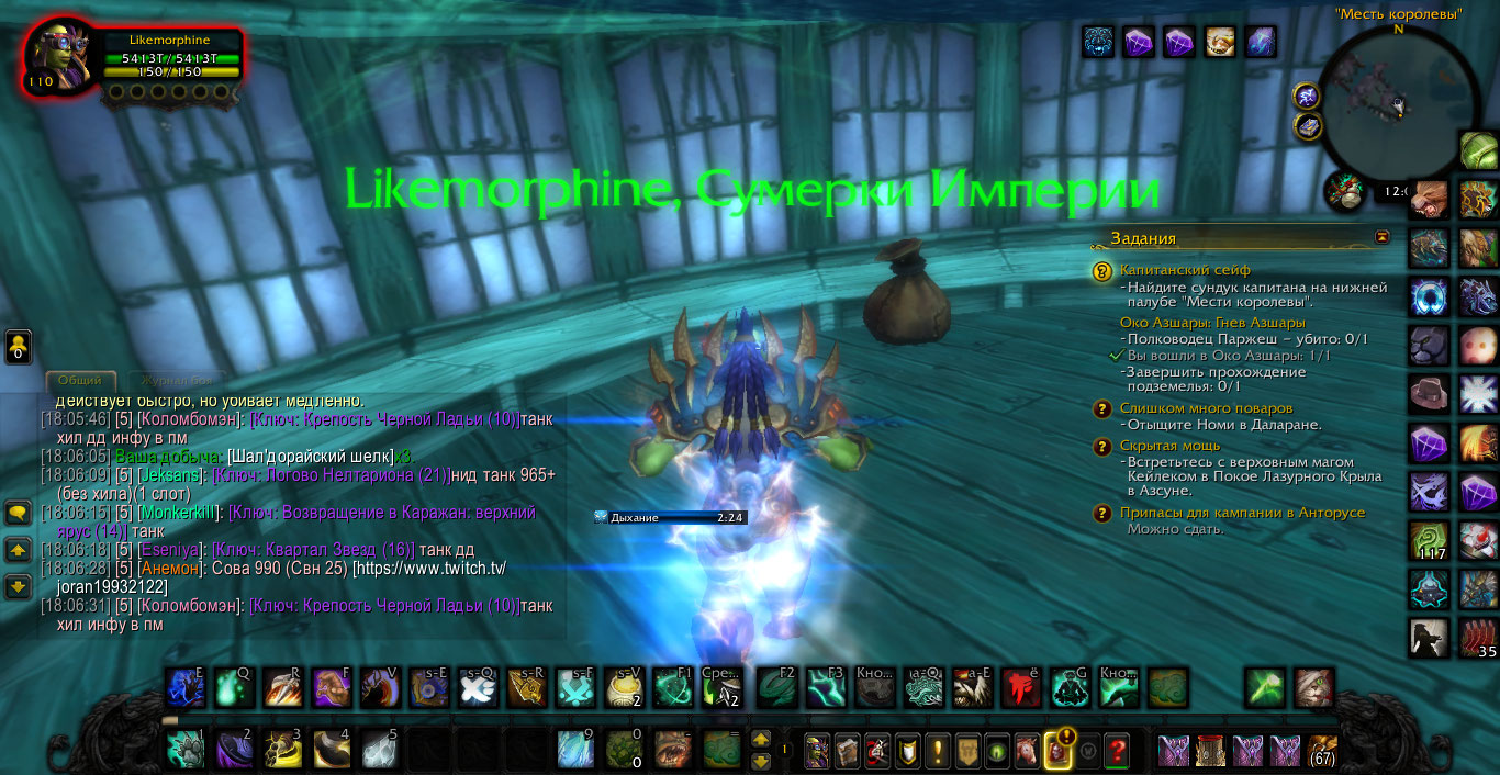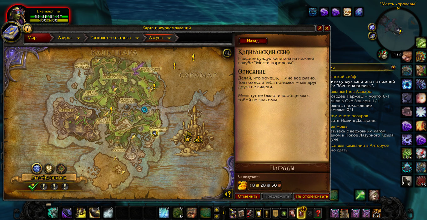 | Description | Проходил сценарий в Азсуне, и застрял на КВ https://ru.wowhead.com/quest=37659/%D0%BA%D0%B0%D0%BF%D0%B8%D1%82%D0%B0%D0%BD%D1%81%D0%BA%D0%B8%D0%B9-%D1%81%D0%B5%D0%B9%D1%84#comments, так как сдавать некуда. Место сдачи должен быть сундук на нижней палубе на корабле, но как видно по скринам тут пустота. Квест отменял и брал заново, релогался, сутки ждал - ничего не помоги. ник Likemorphine, реалм х100 | ||||