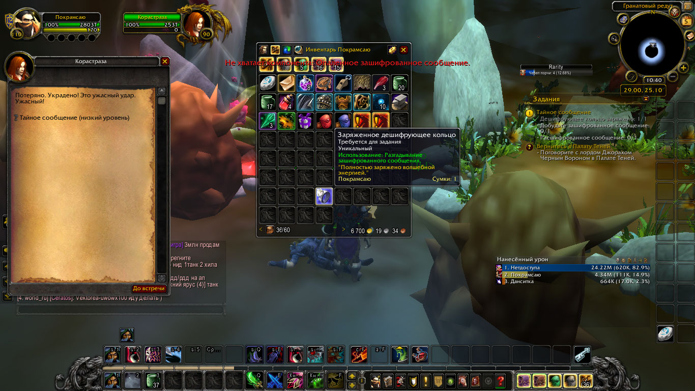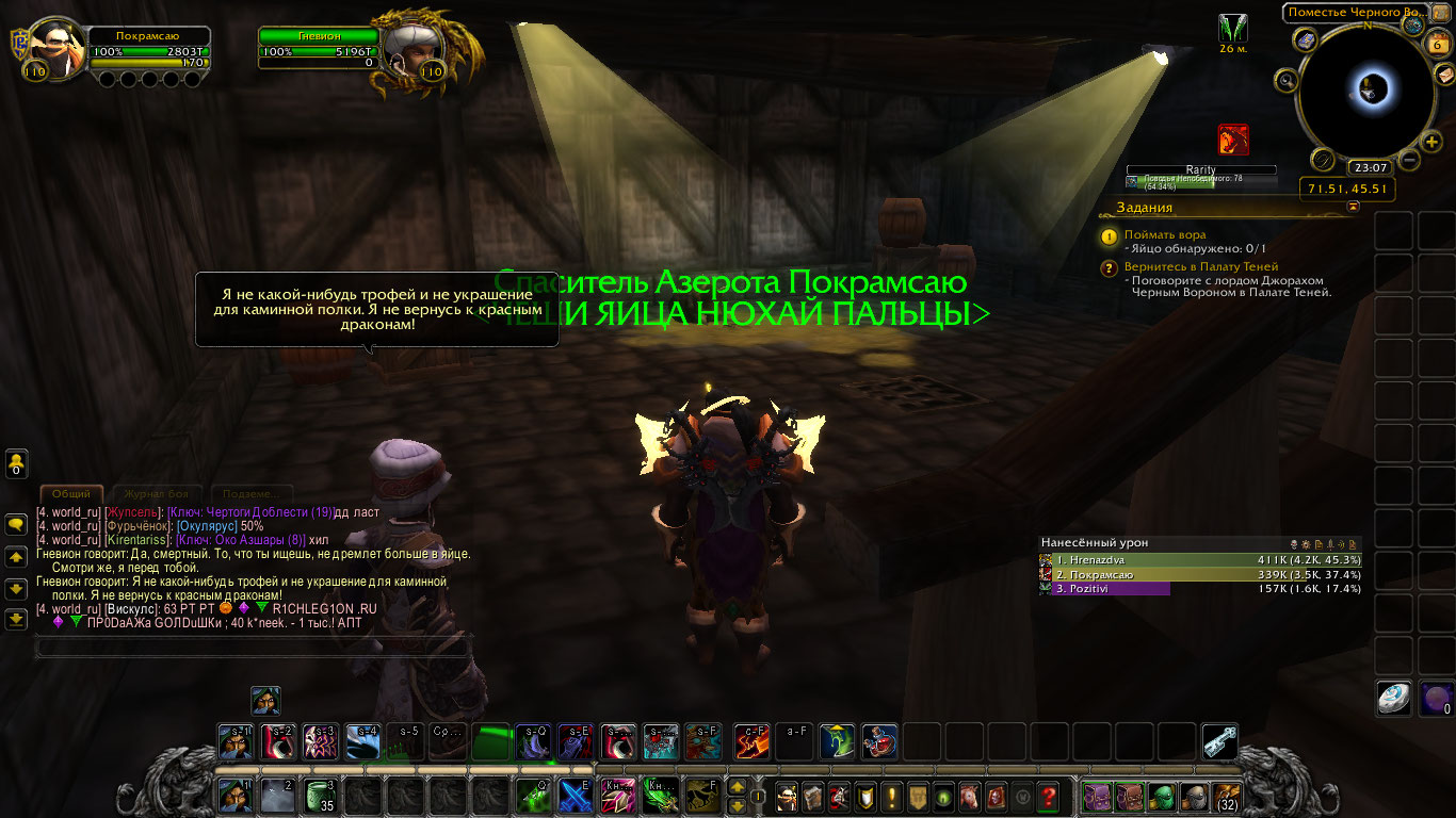 И так, проблема решена. НО теперь кв (https://ru.wowhead.com/quest=29847/поймать-вора )который даёт следующий НПЦ не возможно сделать. Кое-как Гневион появился, перед этим я там был 10 минут потом попал в инст через поиск и вернулся. После этого он только появился, и перестал постоянно повторять фразы. |