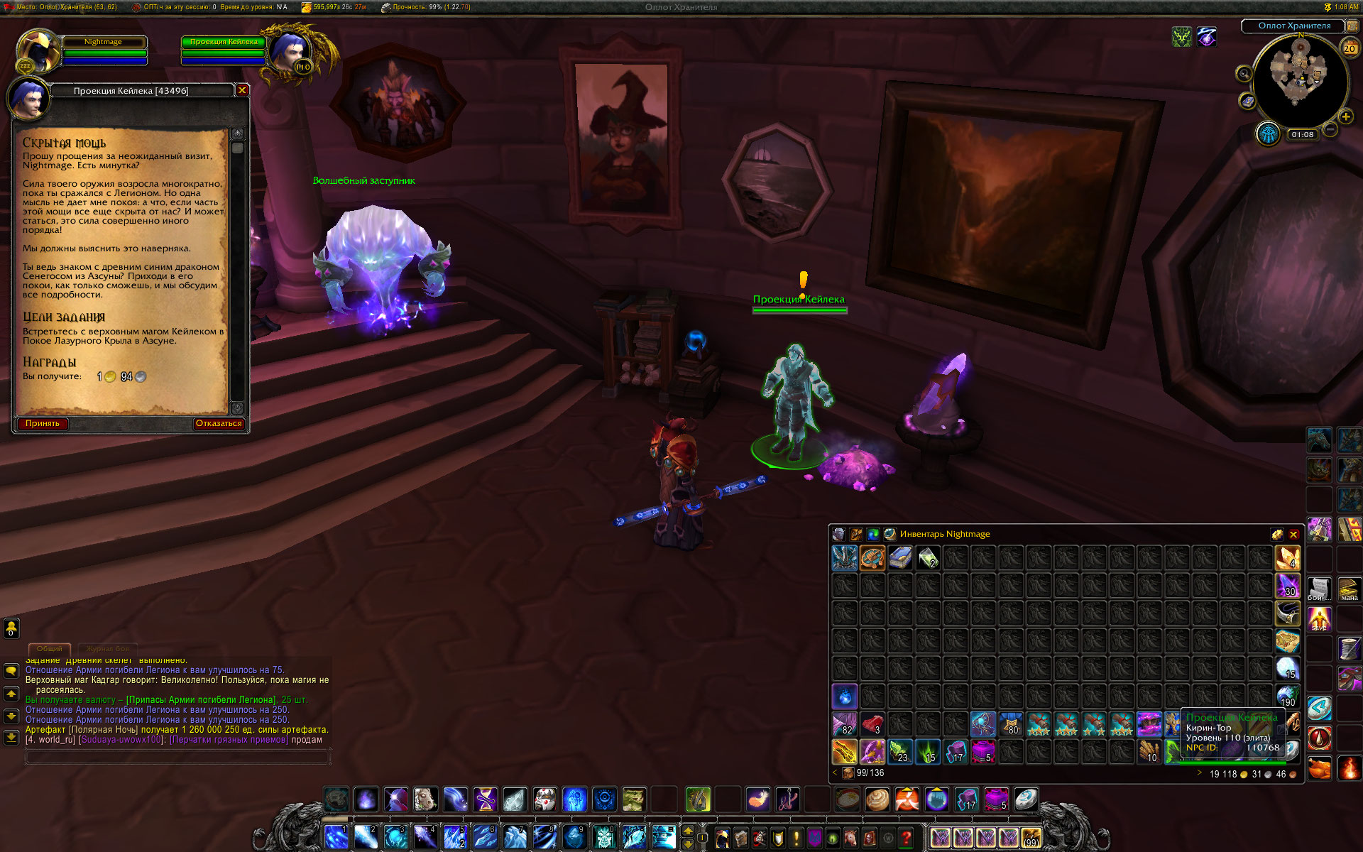 Маг. кампания оплота завершена. Азсуна - не начинал выполнять, квест http://ru.wowhead.com/quest=42756 не выполнен. Проекция Кейлека в оплоте стояла с момента как маг пришел в оплот. Баг? |
