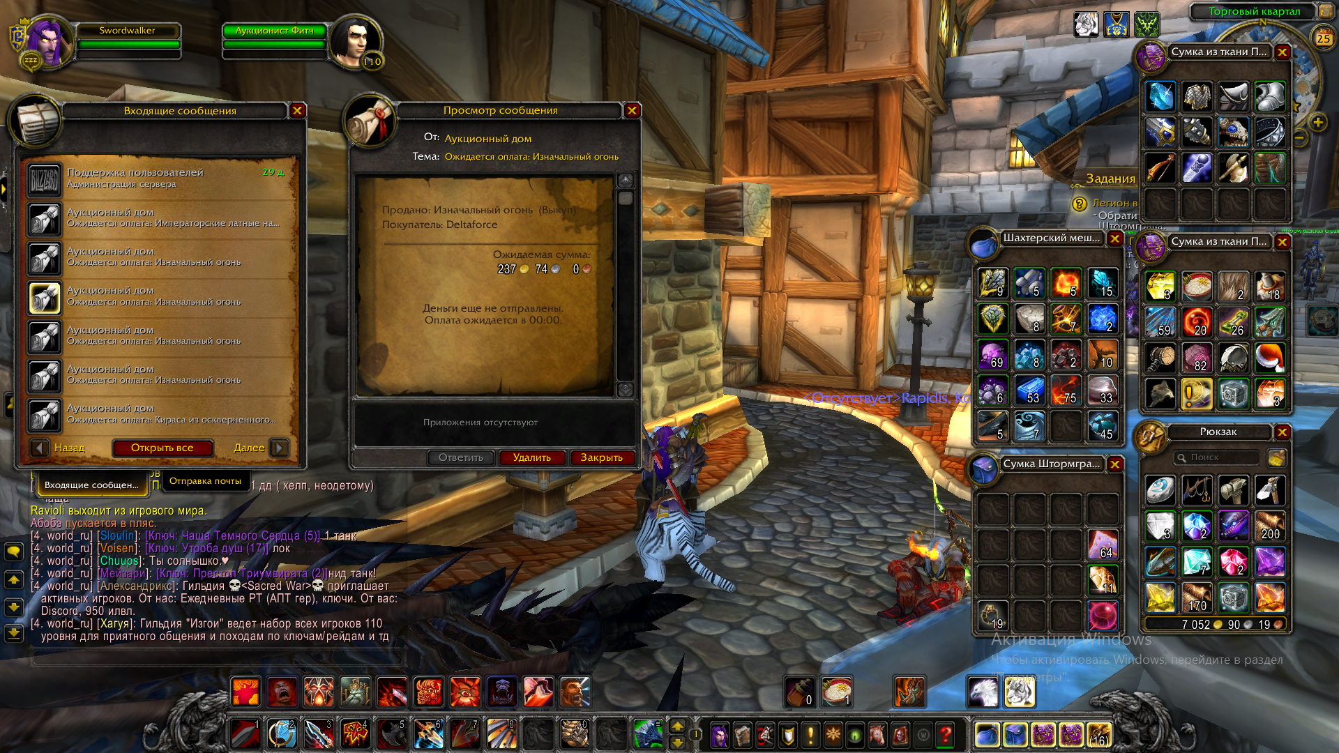 | Description | Вчера вечером (по серверному времени) ко мне пришла первая партия золота за покупку помих лотов на аукционе. Там писалось оплата будет после определенного времени, по истечению она не пришла, я не придал этогу значения, так как было написано оплата ожидается в 00:00. Через часа 3 деньги пришли. Вторая партия (примерно 14 - 16 позиций) так же не пришла оплата, даже после 00:00. В 02:00 я вышел из игры, так и не дождавшись оплаты. в 10:55 я зашел вновь и обнаружил, что почта пуста, деньги не пришли, вещи не вернули. Ситуация очень не приятная, прошу помогите. Писал в помощь, сказали написать сюда. | ||||