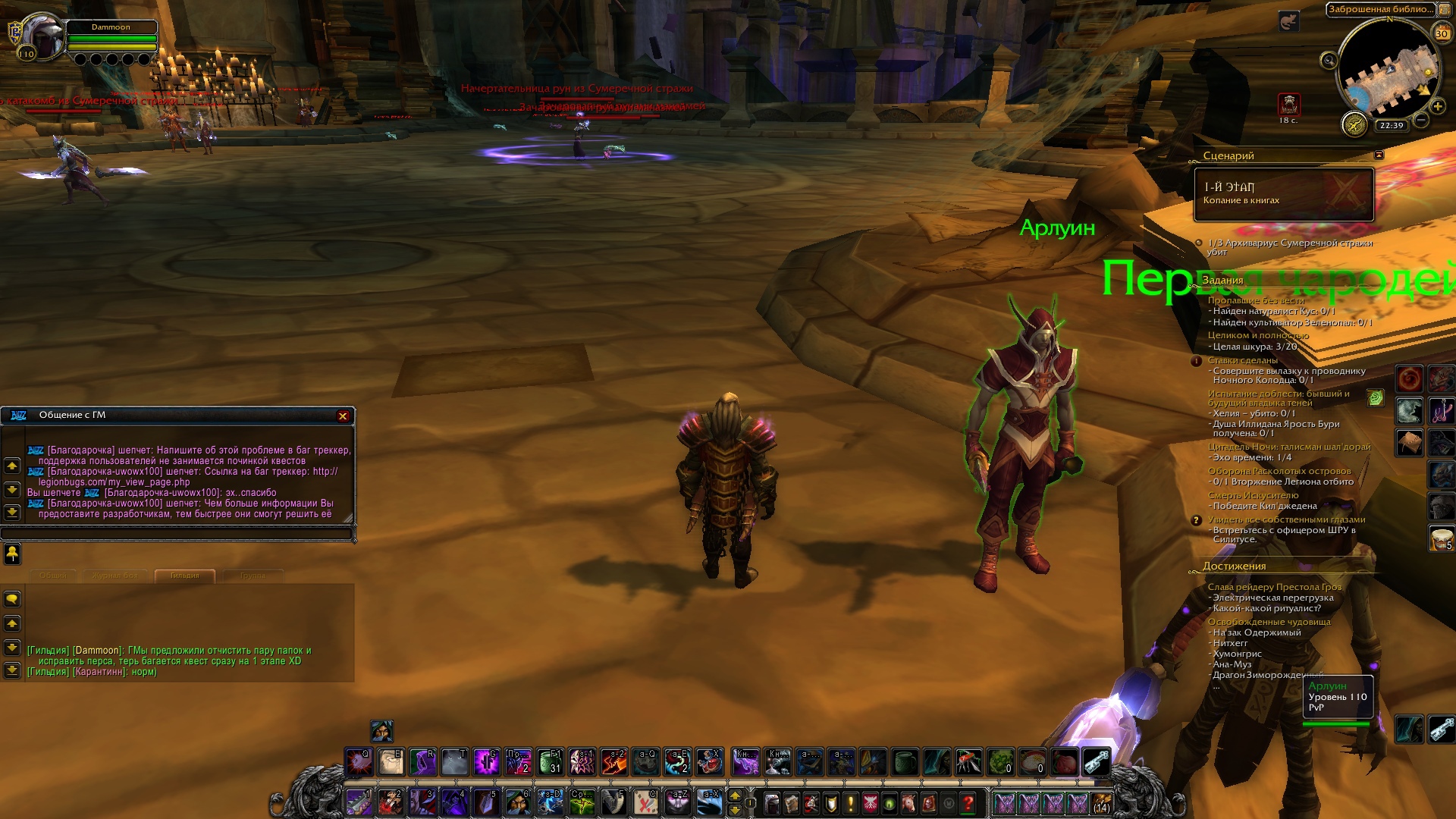 | Additional Information | Ник персонажа, на котором проходила Dammoon, Legion x100 (вдруг важно). На скрине убила 2 Архивариуса, а он незачелся | ||||