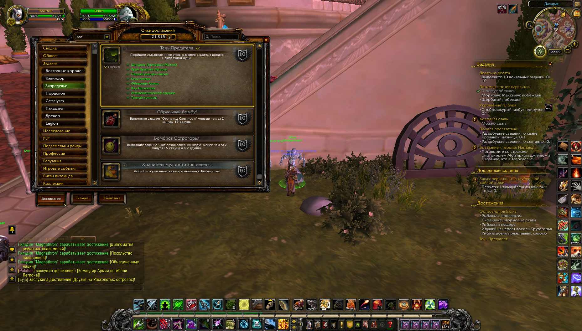 | Description | После получения всех пунктов в достижении само достижение (https://ru.wowhead.com/achievement=1195/%D1%82%D0%B5%D0%BD%D1%8C-%D0%BF%D1%80%D0%B5%D0%B4%D0%B0%D1%82%D0%B5%D0%BB%D1%8F) не засчиталось, О'Ши не засчитывает его. | ||||