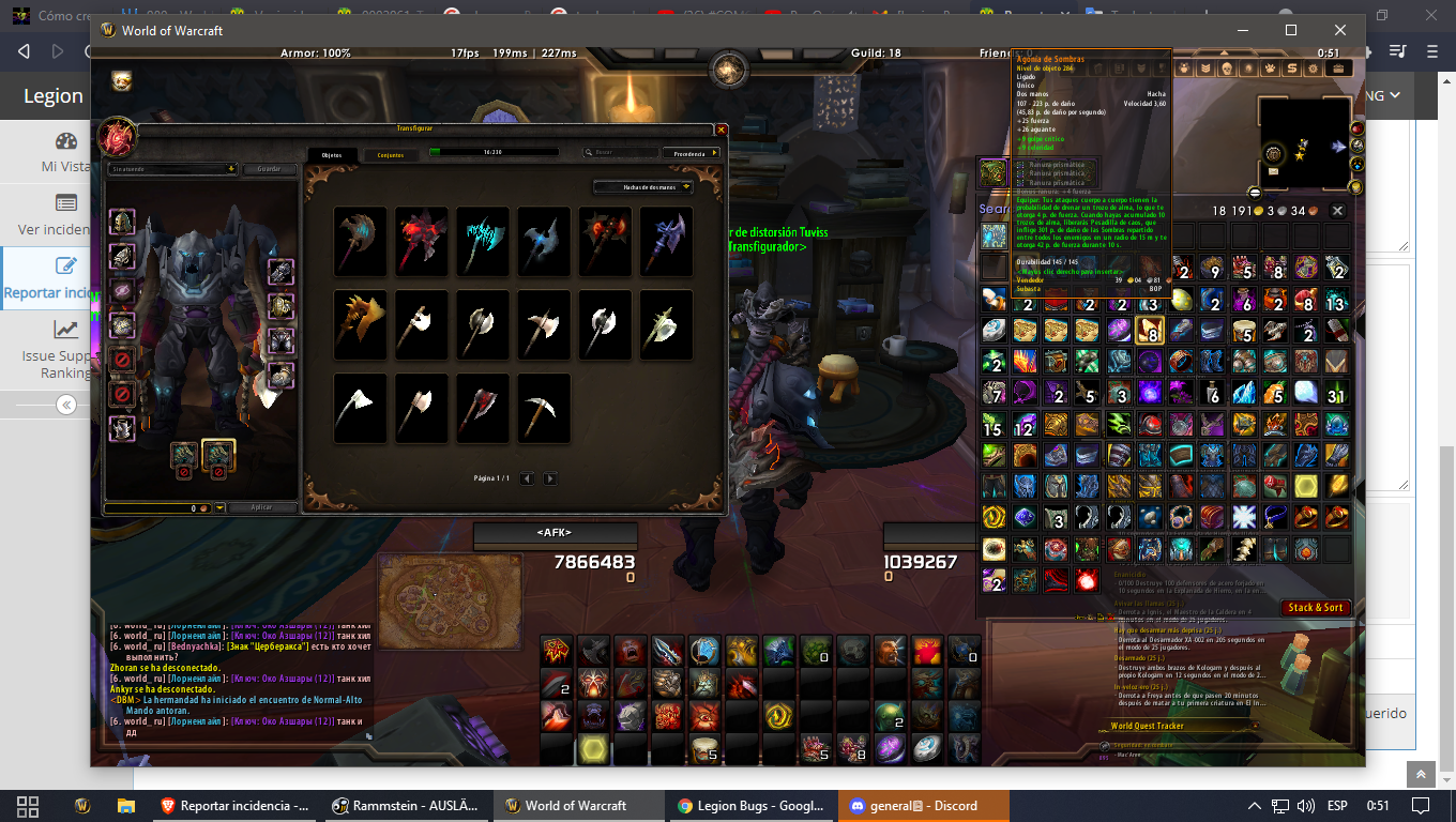 | Description | I tell you, I took my agony out of the shadows and at the moment of transforming it, the agony does not appear in the ax section, it is as if it did not exist, but I have it in the bag and I have the achievement, but the funny thing is that if the edge of shadows appears I took it out just today, date 16, I hope some solution Please or answer, my affected character is called Darkhellsing and I want to transform the two weapons of fury | ||||