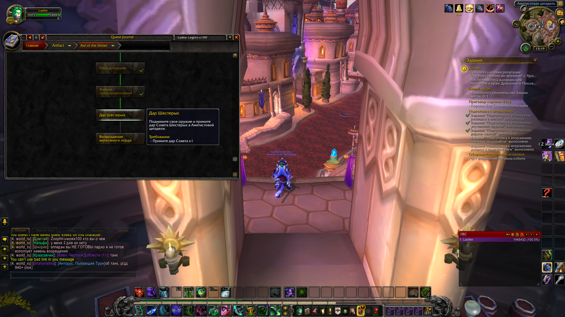 | Description | здраствуйте у меня снова упал этот квест дар шестерых хотя я его уже полечил но по цепочке квеста кампании охотника на демонов он стоит ник в игре Laafee сервер uwow.biz x100 класс Охотник на Демонов раса ночная эльфийка | ||||