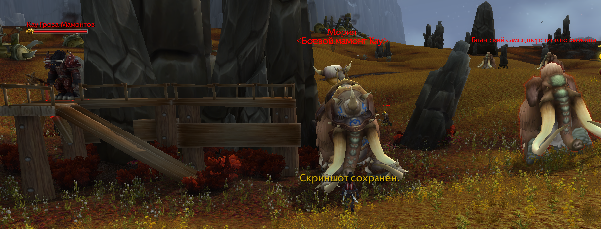 Должна быть возможность сесть на мамонта https://ru.wowhead.com/npc=25743/ и использовать его скилы для боя. На мамонте необходимо подойти к https://ru.wowhead.com/npc=25881/ и ударить, после чего https://ru.wowhead.com/npc=25802/ садится уже на 25881 и продолжается бой. По завершению его надо взять https://ru.wowhead.com/item=35234/ и кв выполняется. Но наши мамонты не кликабельны, а сам 25802 и 25881 без маунта не агрятся и не убиваются. |