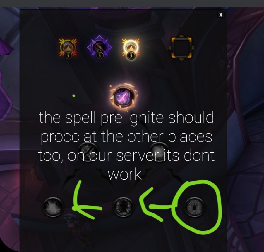 | Summary | 0015781: https://www.wowhead.com/spell=238055/pre-ignited only procs at the light side | ||||