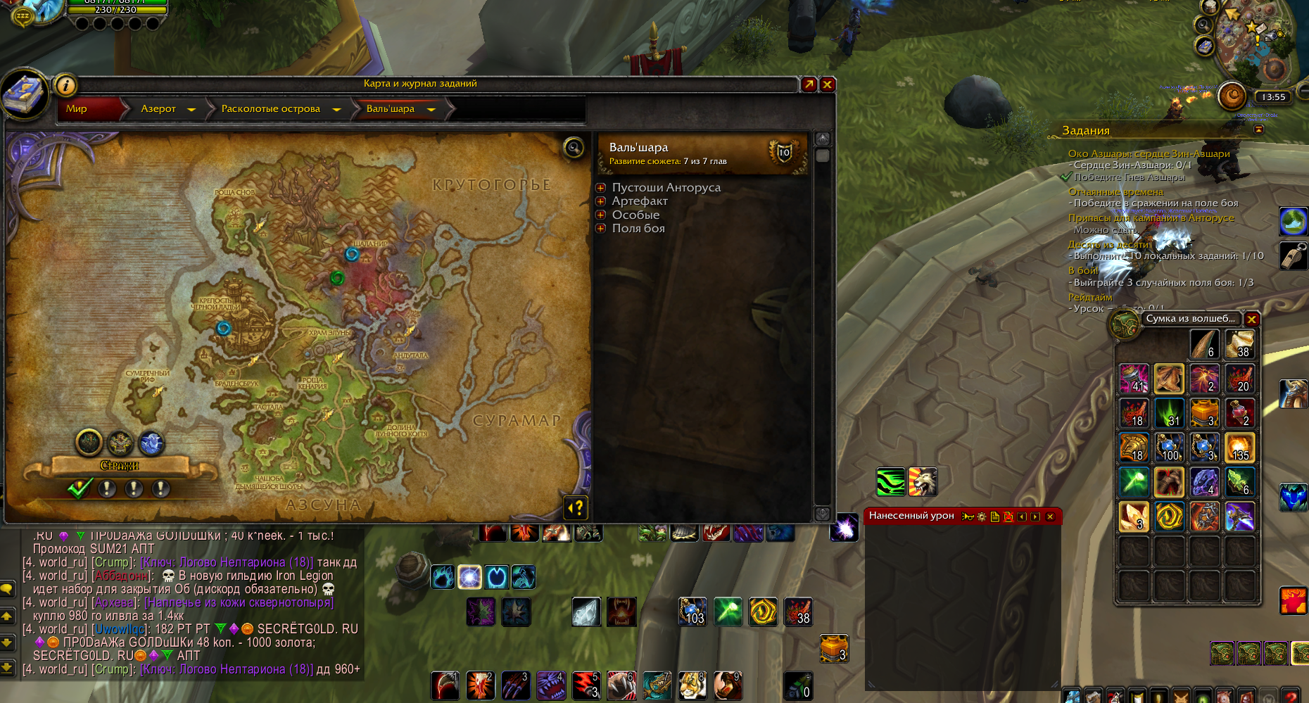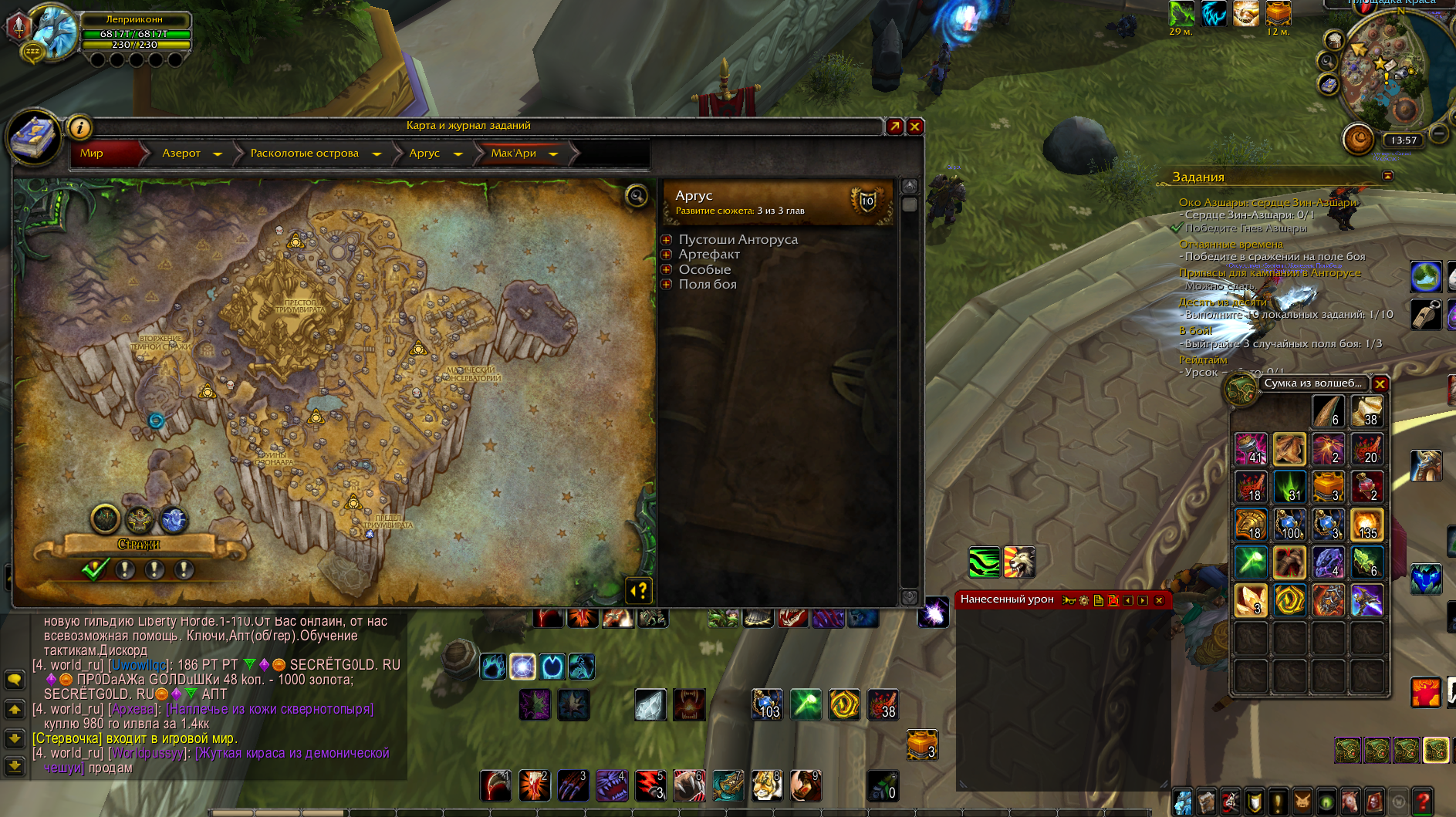 Переустановил клиент, аддонов нет Исправление в лк не помогает. Я в инете видел пост подобный, там писали в ответ тоже что либо аддоны, либо при удалении забаговался какой то квест и просто надо его выполнить, но Я хз какой именно квест Я мог удалить(если это так) А по (http://tracker.legionbugs.com/view.php?id=15870) этому поводу, то так было и до аддонов, даже щас после переустановки та же проблема... |