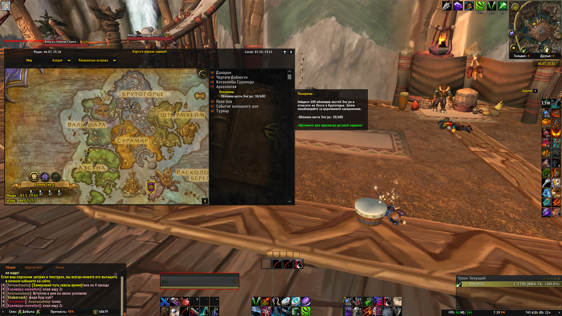 | Additional Information | Каждые две недели при взятии игроком начального квеста археологии, на него вешается аура https://www.wowhead.com/spell=233138 , которая добавляет новые места (1-2 штуки) раскопок в локациях https://ru.wowhead.com/quest=40857 - Штормхейм https://ru.wowhead.com/quest=41158 - Штормхейм https://ru.wowhead.com/quest=41161 - Азсуна https://ru.wowhead.com/quest=41164 - Сурамар https://ru.wowhead.com/quest=41167 - Валь'шара https://ru.wowhead.com/quest=41171 - Азсуна https://ru.wowhead.com/quest=41174 - Сурамар https://ru.wowhead.com/quest=41177 - Валь'шара https://ru.wowhead.com/quest=41180 - Сурамар https://ru.wowhead.com/quest=41183 - Азсуна https://ru.wowhead.com/quest=41186 - Крутогорье https://ru.wowhead.com/quest=41189 - Крутогорье https://ru.wowhead.com/quest=41192 - Крутогорье | ||||