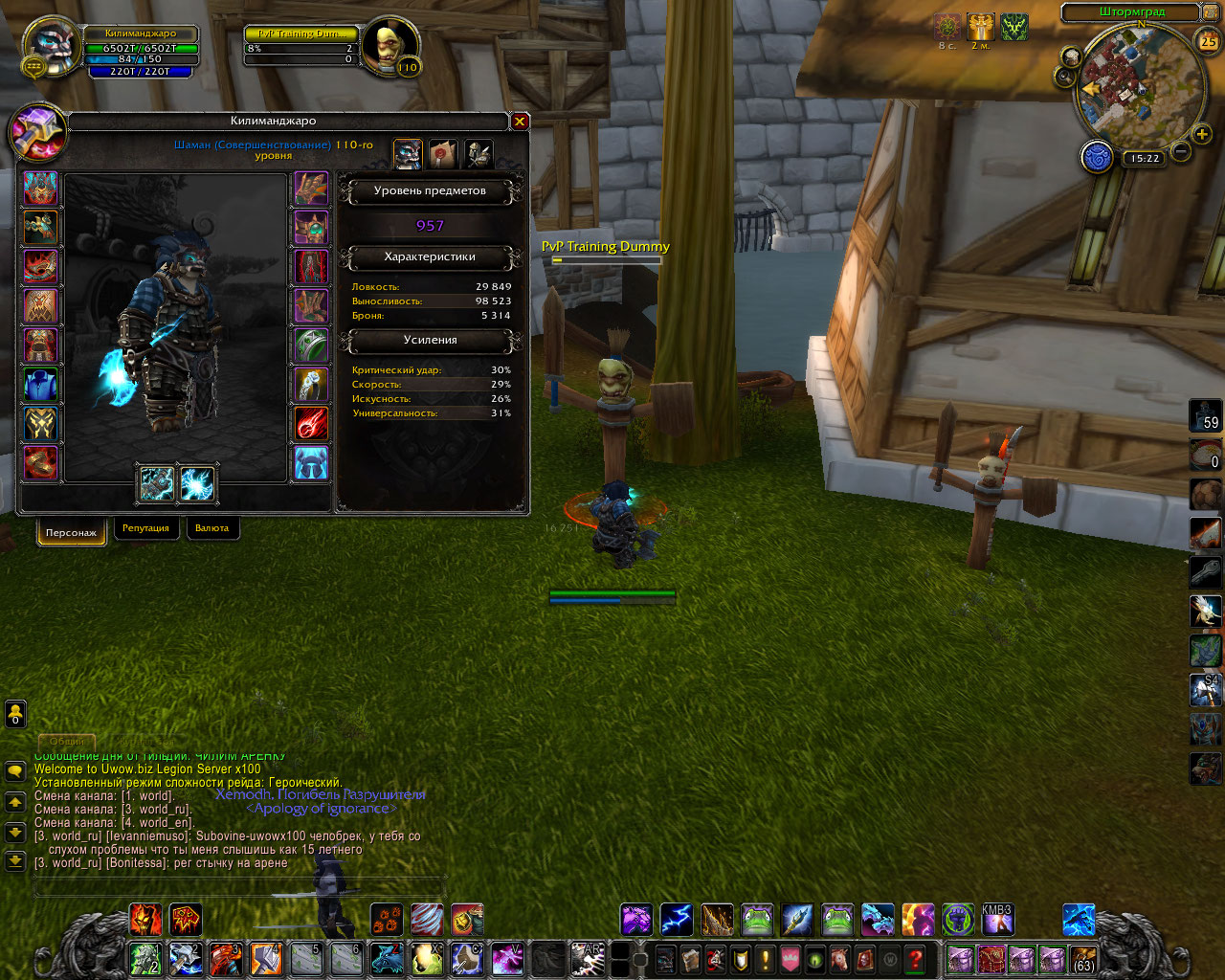 Для сравнения: на скринах шаман с Uwow бьет пвп маник(на арене хп столько же - 6,5кк), на видео шаман с офы с большим артом и илвлом имеет заметно меньше хп (таймкод - показывает шмотки после избиения маника, перед этим показывал таланты, в конце видео - на бг)