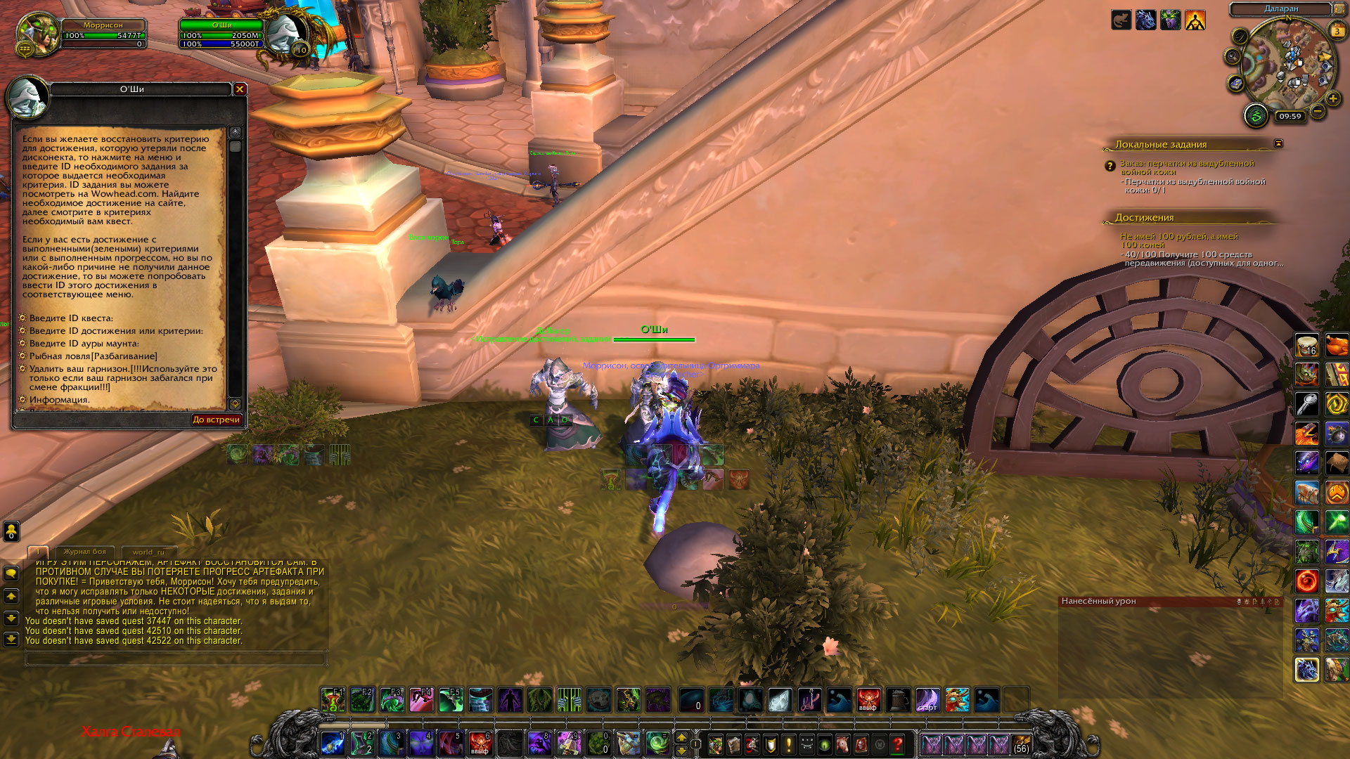 Отписала гму. Сейчас ещё раз пройдитесь по аддону, и посмотрите какие квесты у вас остались не выполненными заскриньте и сюда приложите. Чем больше информации дадите, тем проще будет отследить, какой квест багает вам фазу. |