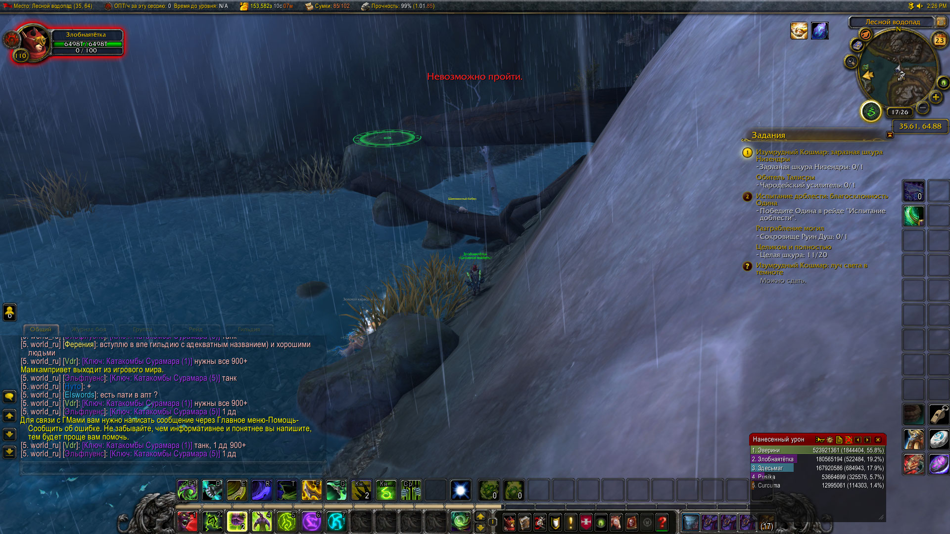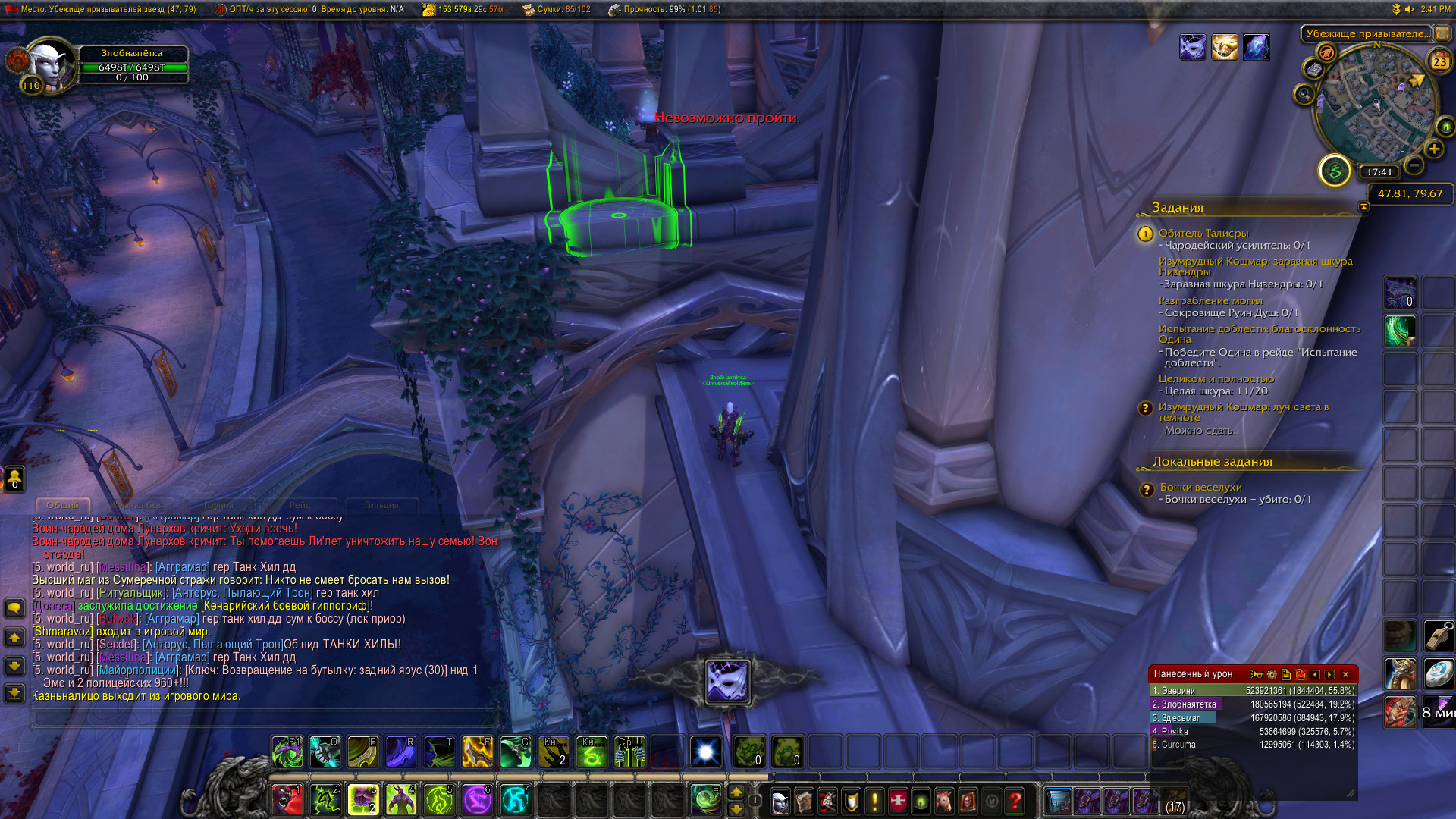 | Description | Во время использования Инфернального удара в местах где персонаж не может пробежать НАПРЯМУЮ пешком система выдаёт ошибку "Невозможно пройти" хотя по логике вещей персонаж должен был бы спокойно запрыгнуть туда с помощью инфернального удара. (речь не идёт о тех местах где вообще персонаж не может находится, а о тех, куда, к примеру, можно залететь на маунте) | ||||