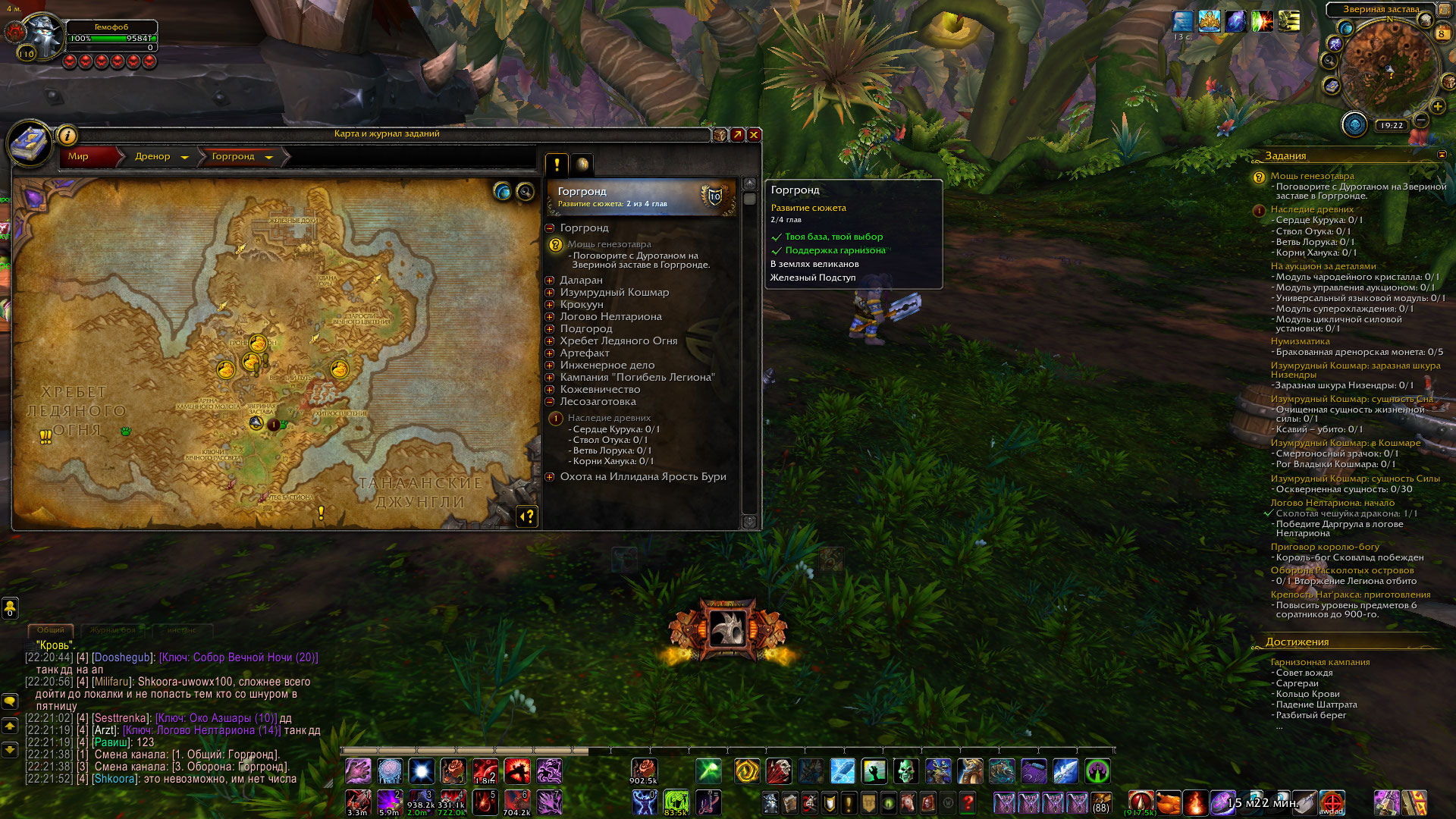 Вот вы все простые наивные. Дренор как дополнение - от начала и до завершения проходит как "Завоевание Дренора". То есть высадились на берегу и пошли вперед... Из локации к локации , от точки к точке. НПС в следующей по сюжету точке появляются, после выполнения всех квестов в предыдущей главе квестов локации. И если просто прийти куда то пешком, порталом или на крыльях товарища - там может быть пустое место, так как НПС туда еще не пришли. Случайные квесты сдавать некому, полетки нет. Что и видно на скрине. Баг был бы, если бы на скрине был виден прогресс - полностью выполненная сюжетка Ледяных скал и как минимум часть сюжетки Горгронда с выполненым пунктом Звериная застава. Покажите что пункт "Звериная застава" в сюжетке Горгронда в Вас выполнен? |