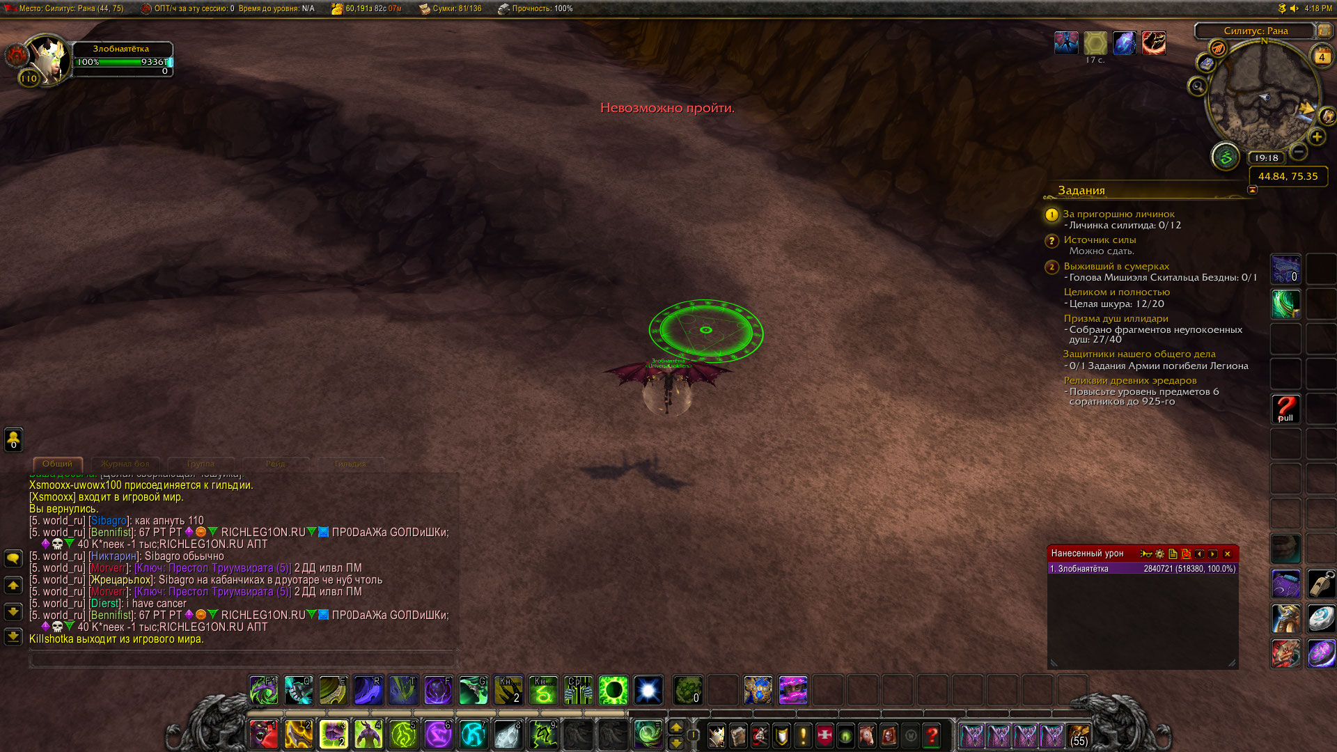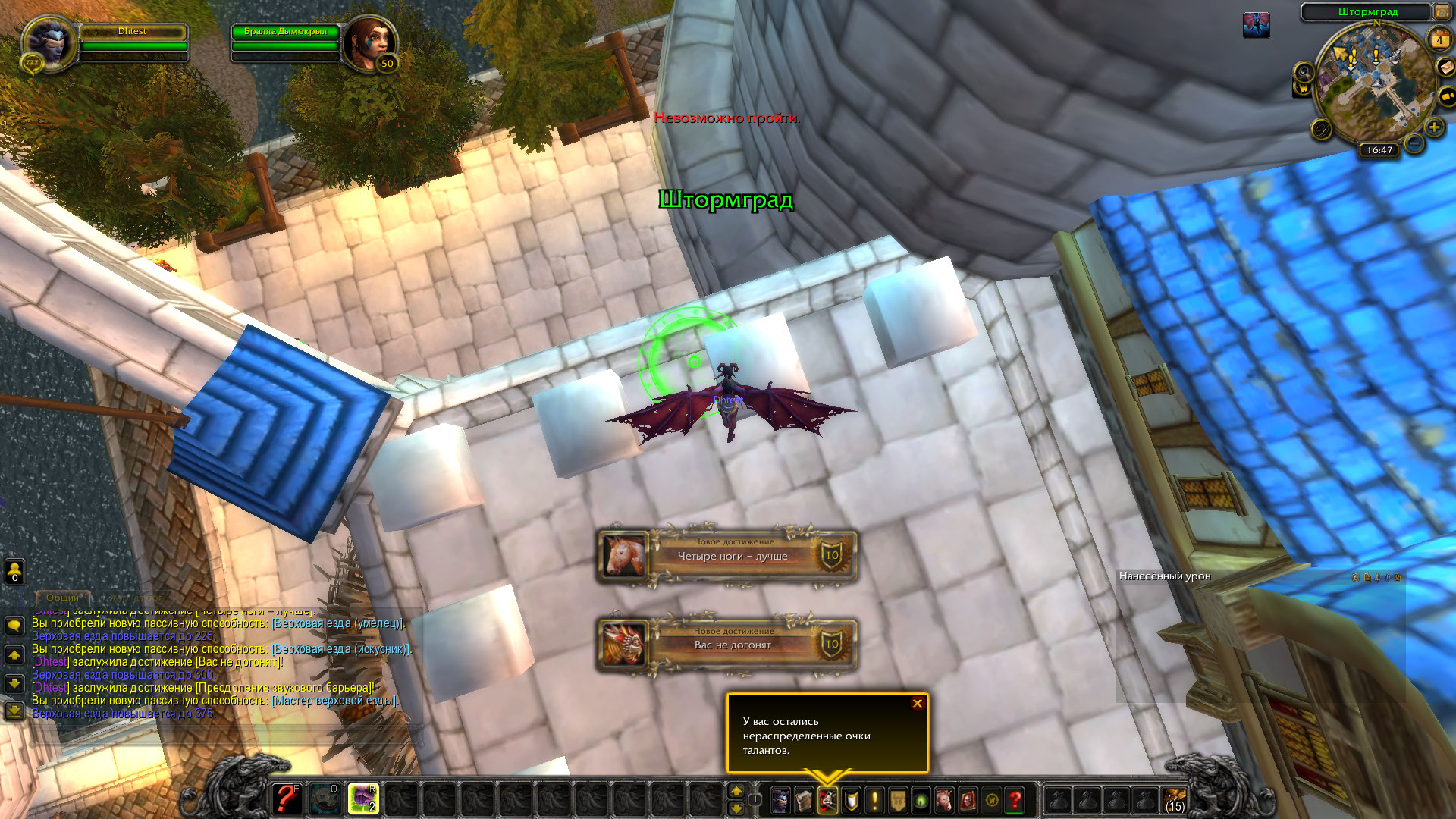 | Steps To Reproduce | Prerequesites: ДХ Месть с наличием навыка Инфернальный удар. 1. Сесть на летающего маунта и взлететь 2. Спешится и раскрыть крылья 3. Долететь до земли на расстояние дальности действия Инфернального удара 4. Пробовать использовать Инфернальный удар на землю | ||||