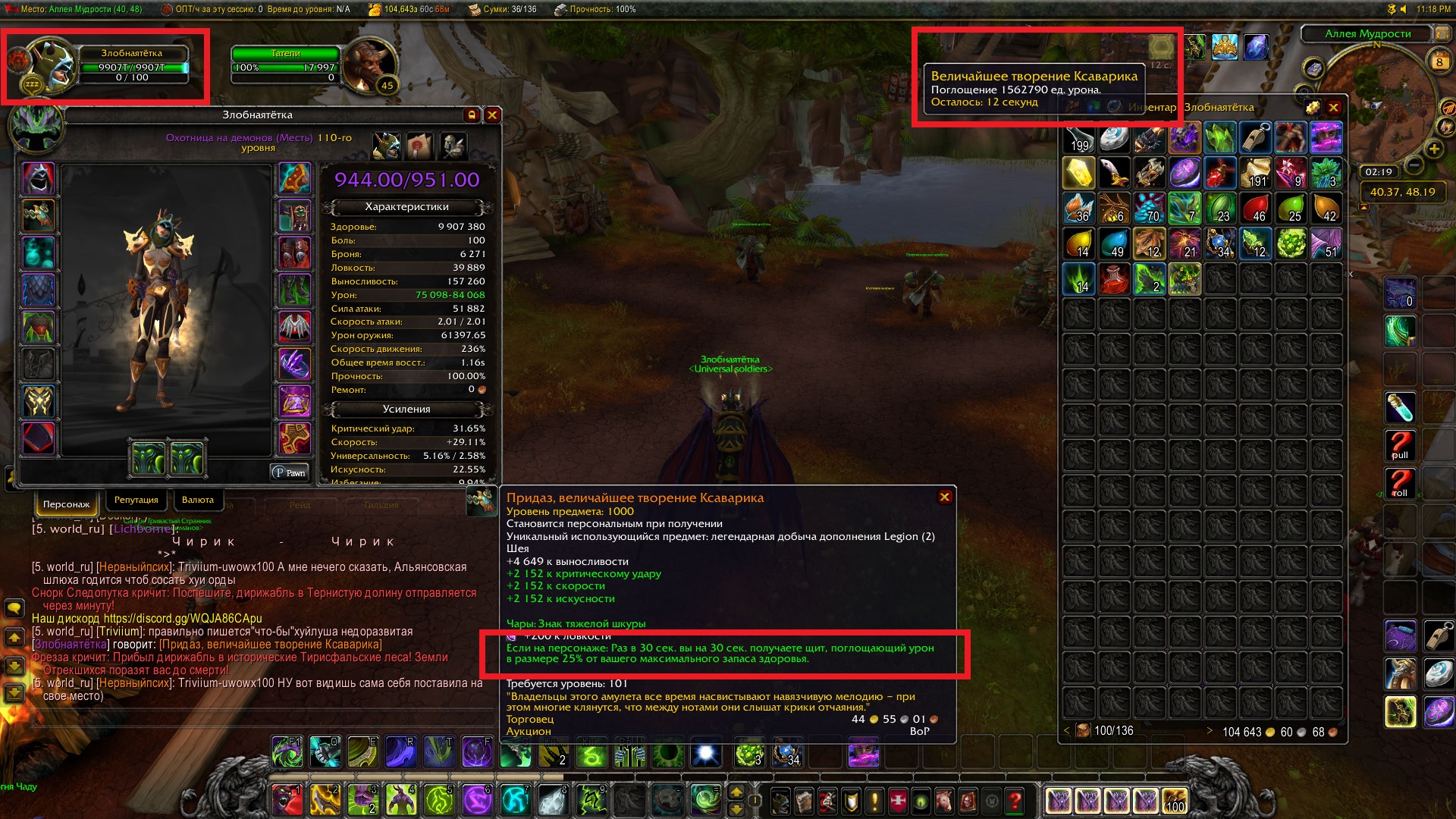 Prydaz, Xavaric’s Magnum Opus: Every 30 seconds, gain an absorb shield for 15% (25% for non-tanks) of your maximum health for 30 seconds. Now has Critical Strike, Haste, and Mastery as secondary stats. С ссылки выше |
