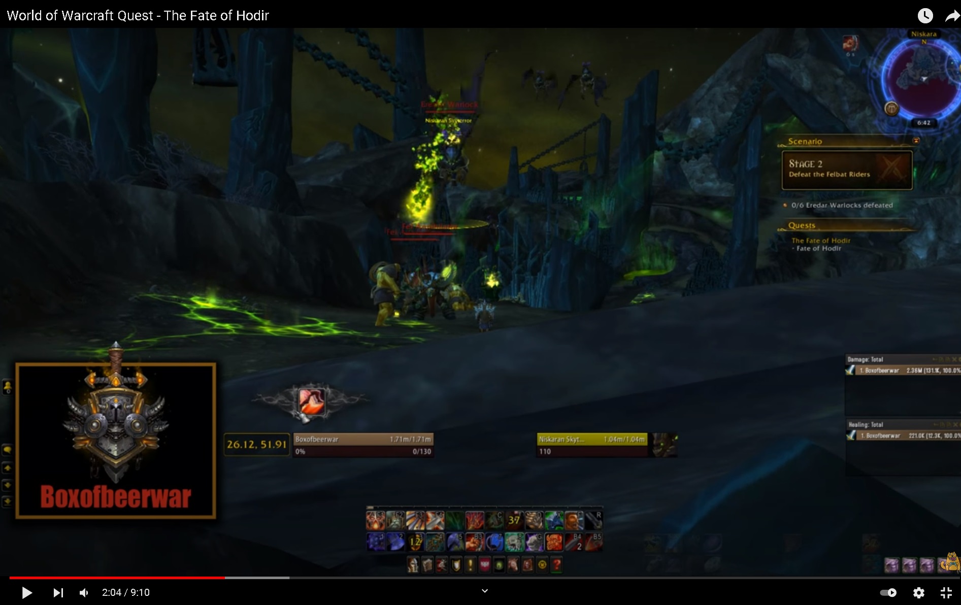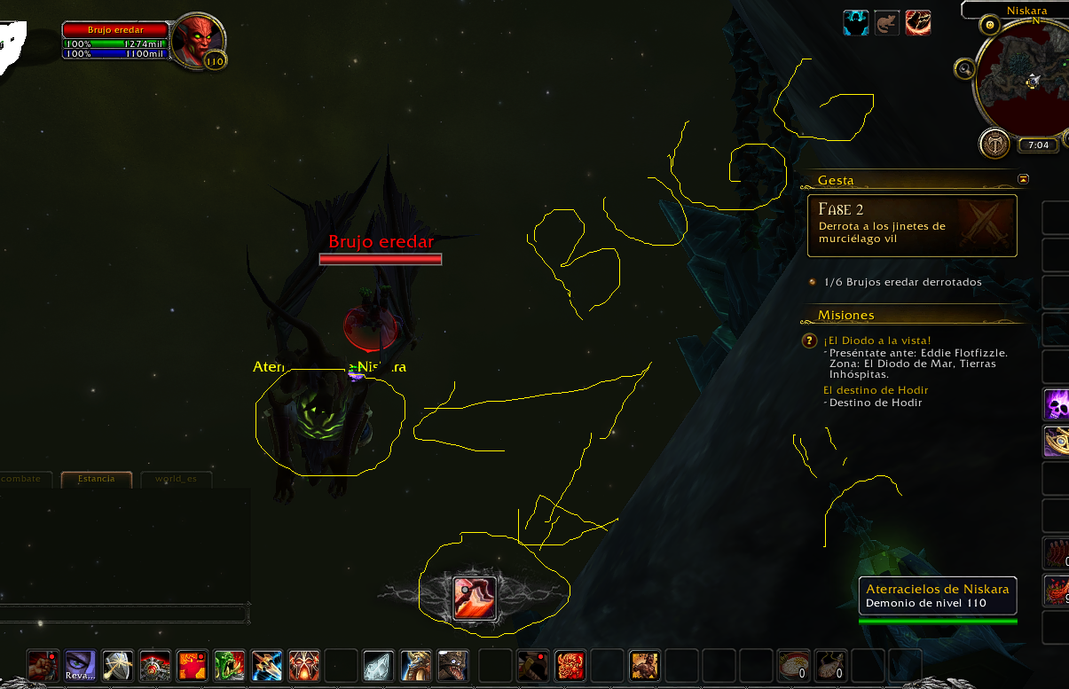 Use Leap on Felbat to jump onto felbat and slay warlock that rides it. Then target another one and repeat. Be sure you targeted a felbat instead of warlock to be able to use Leap on Felbat. from comment https://www.wowhead.com/quest=42974/the-fate-of-hodir#comments:id=2477551 Pay special attention - in video 2.04, the target is the mount, not the rider. You have a rider in your target (on your screen). |