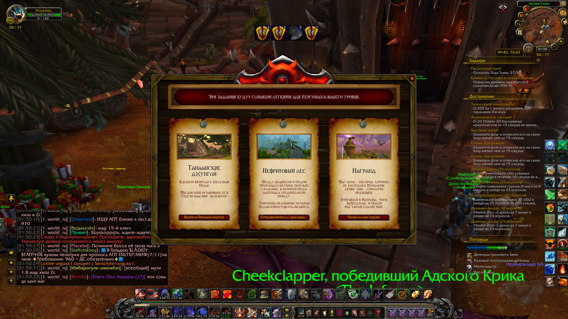 https://ru.wowhead.com/quest=29390/%D1%81%D1%82%D1%80%D0%B0%D0%B6%D0%B8-%D1%85%D0%B8%D0%B4%D0%B6%D0%B0%D0%BB%D0%B0-%D0%BF%D1%80%D0%B8%D0%B7%D1%8B%D0%B2-%D0%B4%D1%80%D0%B5%D0%B2%D0%BD%D0%B8%D1%85-%D0%B7%D0%B0%D1%89%D0%B8%D1%82%D0%BD%D0%B8%D0%BA%D0%BE%D0%B2 вот это показывает не пройдено и проблема скорее всего в нем. Квест берется на доске приказов, но там 3 квеста, которые невозможно взять - пробовал на разных досках |