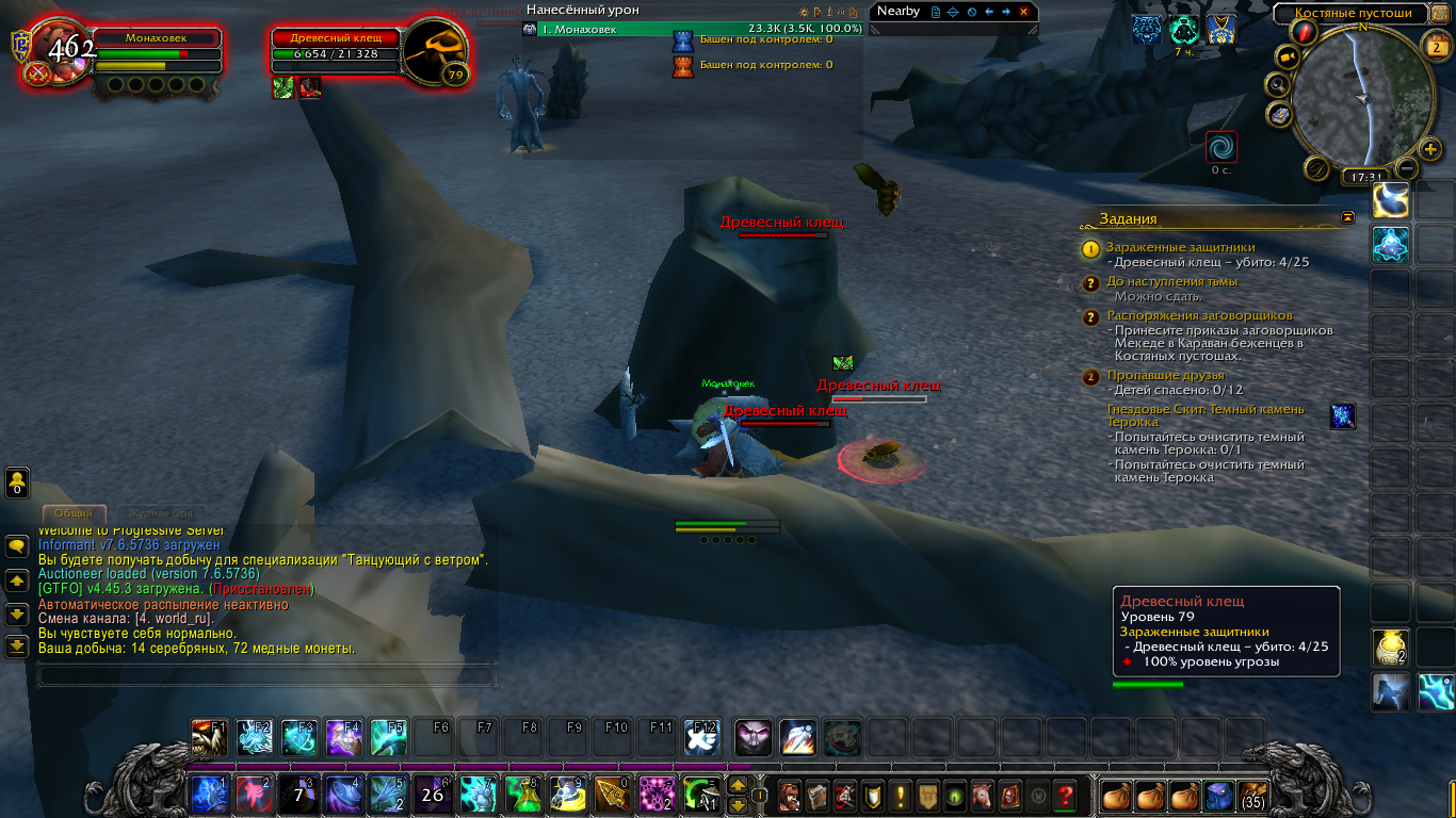 | Description | По квесту Зараженные защитники нужно убить зараженных корнеходов и другие деревья, при их убийстве из них выпадают древесные клещи, у которых должно быть не больше 100 хп и они должны убиваться любой АУЕ атакой, НО из-за скалирования у них стал 79 уровень как и у меня и по 20к у каждого. А это немного дохрена для клещей, которые выпадают из деревьев пачками. Должно вроде как быть как на видео https://www.youtube.com/watch?v=oATQ-hF46LQ | ||||