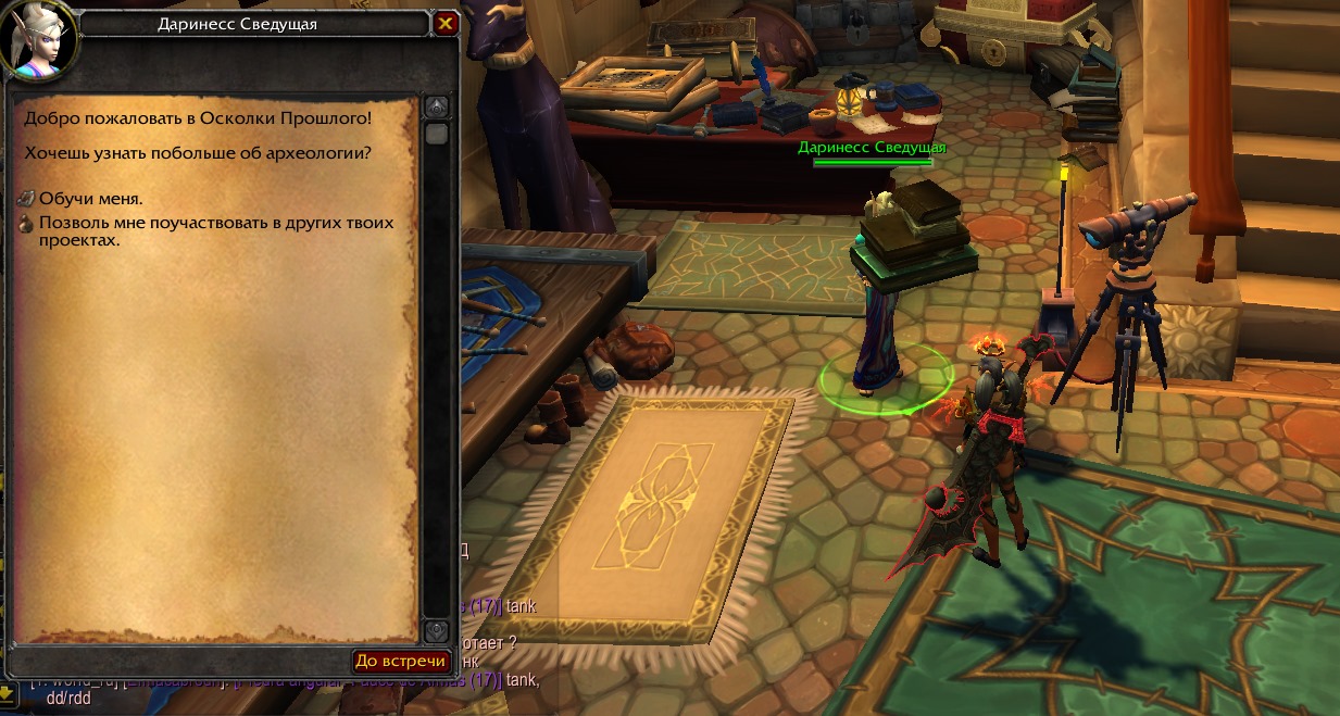 | Description | После того как качнула профессию до 700 что бы на Легионе открылись квесты и места раскопок. Взяла первый квест и сделала в Сурамаре , потом квестов больше не было. Показывает на карте в Даларане квест у учителя Археология " Мелкие кусочки" ,подойдя к учителю - квеста нет. | ||||
